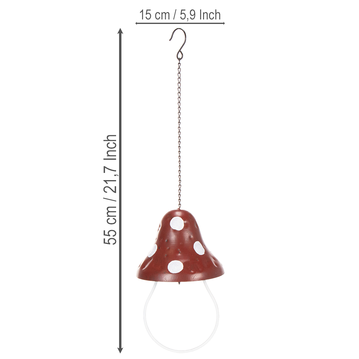 Nombre del producto: Comedero metálico para plantas acuáticas, diseño de amanita muscaria, colgante, rojo y blanco, 25,5 cm.
