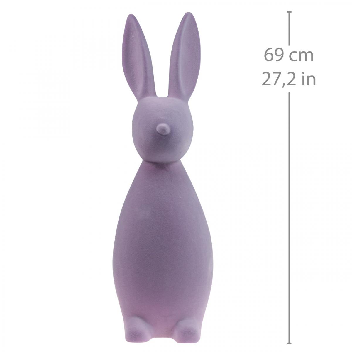 Nombre del producto: Conejito de Pascua decorativo, flocado en lila y morado, 69 cm de alto