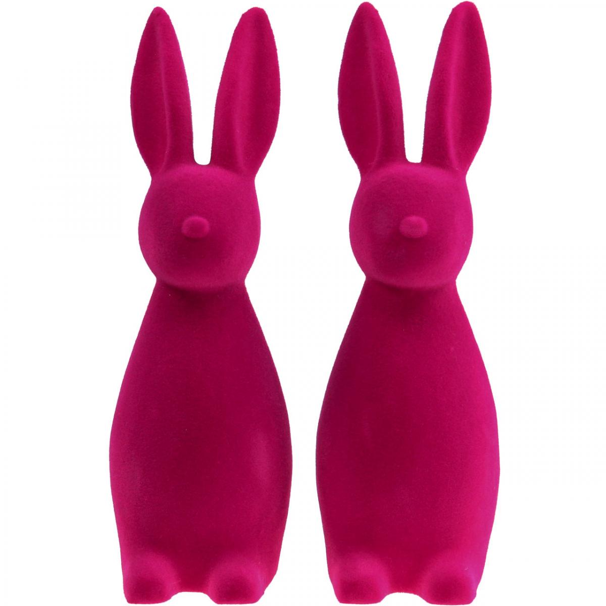 Nombre del producto: Conejito de Pascua decorativo, rosa flocado, 29,5 cm de alto, 2 piezas