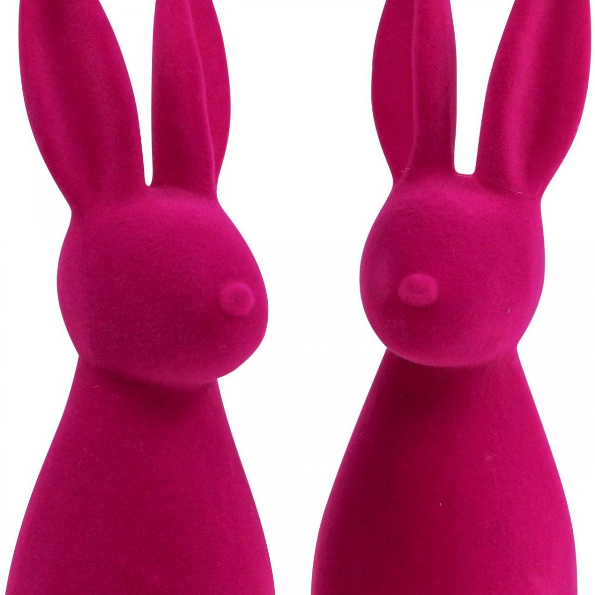 Conejito de Pascua decorativo, rosa flocado, 29,5 cm de alto, 2 piezas