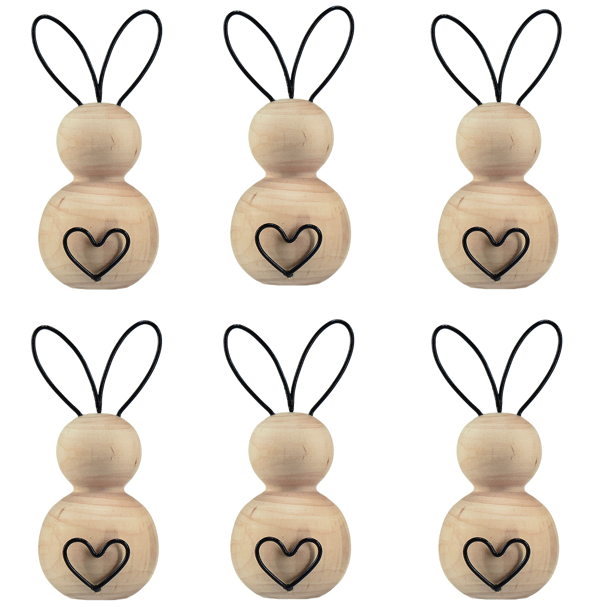 - 6 conejitos de Pascua de madera y metal
