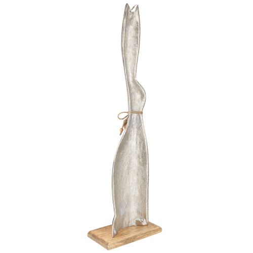 Conejo de Pascua color plata sobre base de madera A60cm