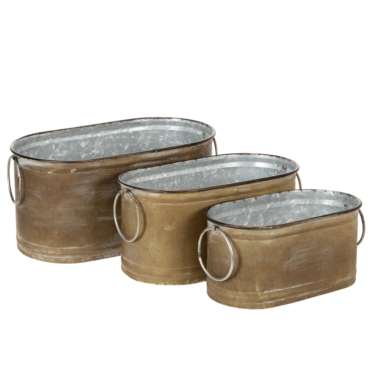 Conjunto de macetas y tinas de metal, estilo retro vintage, L22,5cm/27cm/31cm