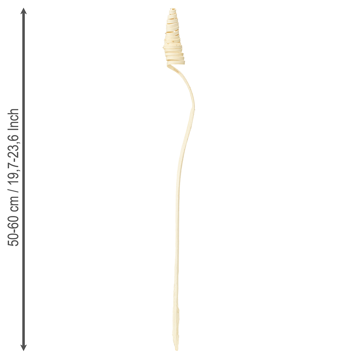 Las espirales de madera Cane Cone están blanqueadas para un aspecto noble y se entregan en un conjunto de 25 piezas. Como son productos naturales, la longitud del tallo puede variar. Entonces los palos de madera tienen entre 50 y 60 centímetros de largo.