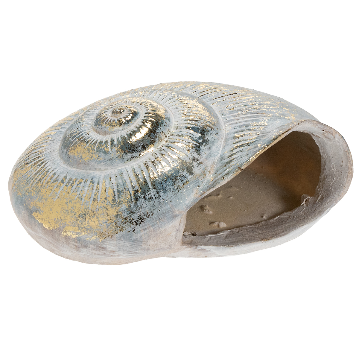 Contenedor decorativo en forma de caracol para diseño de pared marítimo y natural, gris, 21 cm
