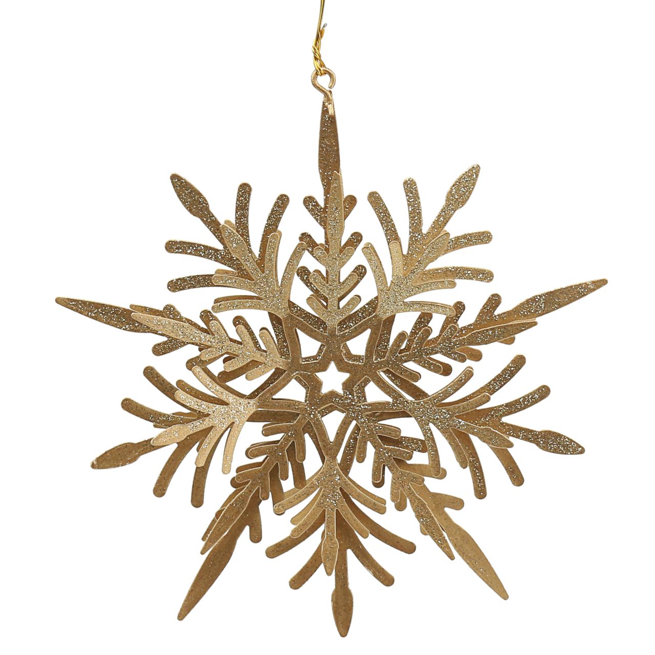 Copo de nieve efecto 3D dorado 16cm x 15,5cm 2 piezas