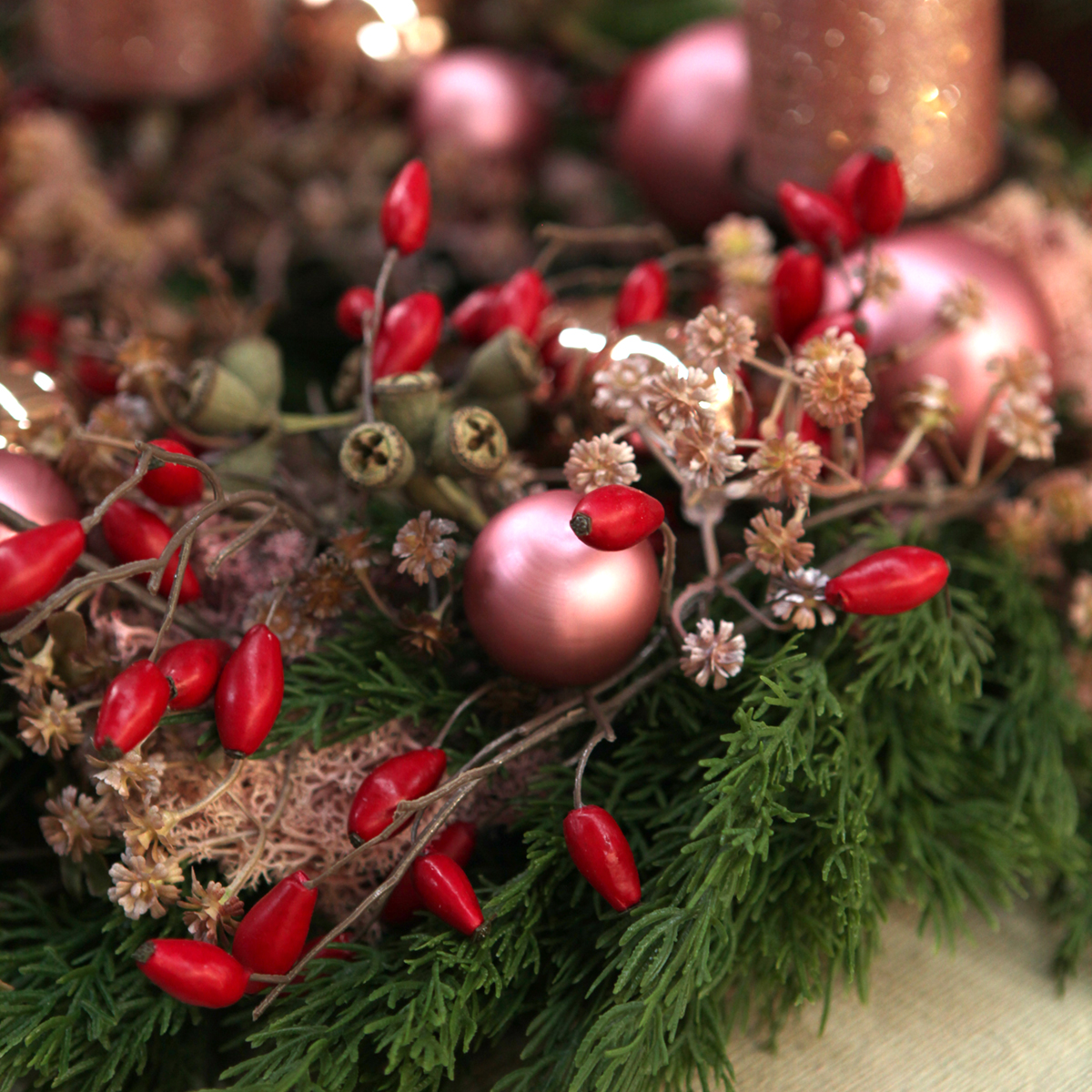 El color rojo simboliza calidez y pasión, ideal para la acogedora atmósfera otoñal. Los escaramujos también representan temas como la renovación y la fertilidad. Los toques rojos aportan a cualquier estancia un aura vibrante y positiva. Especialmente durante las estaciones más oscuras, una corona roja aporta un toque vibrante y enérgico a tu hogar.
