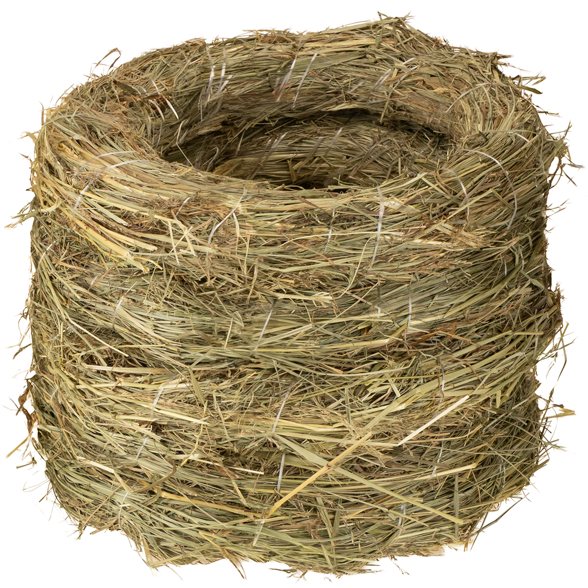 Las coronas de heno están unidas en un paquete de 5 piezas en total y todas están hechas a mano. Se seleccionó heno de alta calidad, que luego se enrolló en un anillo y luego se ató con una cuerda de nailon para darle forma. Por eso las dimensiones siempre pueden variar ligeramente; Las coronas tienen un diámetro exterior de aproximadamente entre 26 y 27 centímetros. El diámetro interior es de unos 19 centímetros y la altura es de unos 4 centímetros.