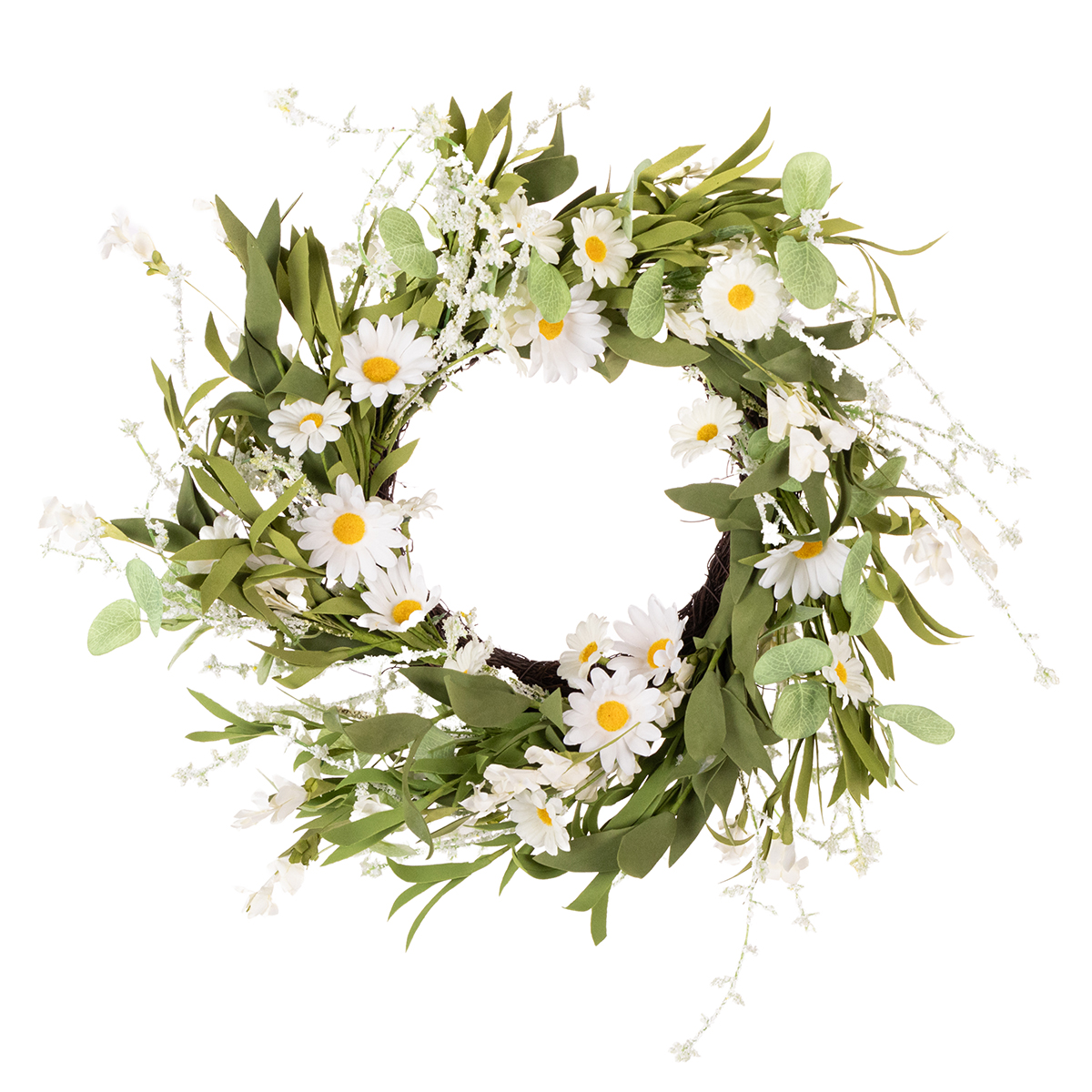 Corona de margaritas artificiales, aspecto natural y duradera, para decoración de puertas y paredes, 55 cm