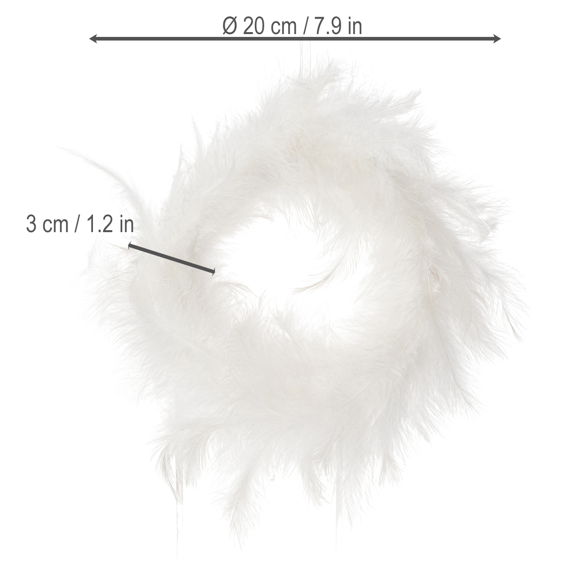 La corona de plumas es especialmente atractiva gracias a su versatilidad. En una boda, por ejemplo, se convierte en el centro de todas las miradas: como decoración para la mesa nupcial, para realzar un ambiente romántico, o como un delicado detalle en una mesa floral, quizá combinada con rosas blancas o eucalipto. También ofrece posibilidades creativas para la decoración de Pascua, ya sea como un nido minimalista de Pascua en un arreglo de mesa o en la puerta como saludo de bienvenida. Gracias a sus compactas dimensiones de 20 cm, se adapta tanto a espacios pequeños como grandes sin resultar recargada. Quienes prefieran un estilo natural y sencillo pueden combinar esta corona decorativa con elementos rústicos como yute o una elegante cinta de terciopelo para realzar las suaves plumas. Una característica especialmente encantadora: el blanco monocromático armoniza con casi cualquier color, ya sea un romántico rosa, un elegante dorado o un verde fresco.