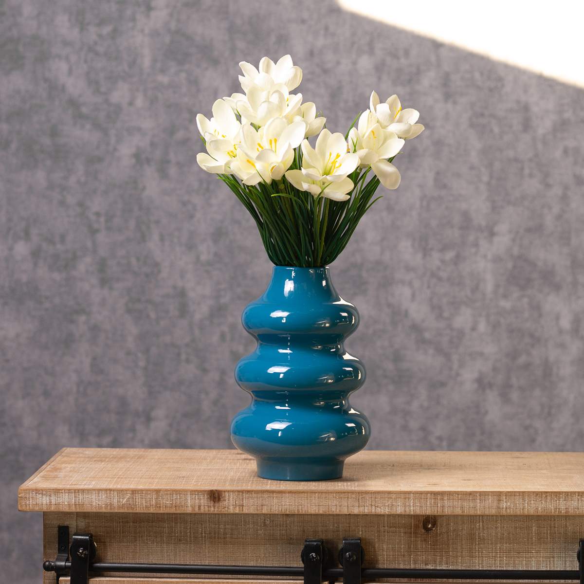 Ya está en el aire la primavera: ¿qué te parece traer ese aire fresco y luminoso a tu hogar ahora mismo? Con nuestro azafrán artificial en blanco radiante, puedes crear decoraciones primaverales atemporales y duraderas. Ya sea en el alféizar de la ventana del salón, como pieza central en una boda primaveral o como un elemento destacado en la oficina, este encantador azafrán artificial aporta un toque de elegancia natural a cualquier espacio. Los seis tallos de flores, elaborados con esmero, lucen increíblemente realistas gracias a su detallada confección en tela de seda. A todo esto, se suman sus vibrantes hojas verdes: una combinación perfecta que infunde en cualquier estancia un acogedor ambiente primaveral.