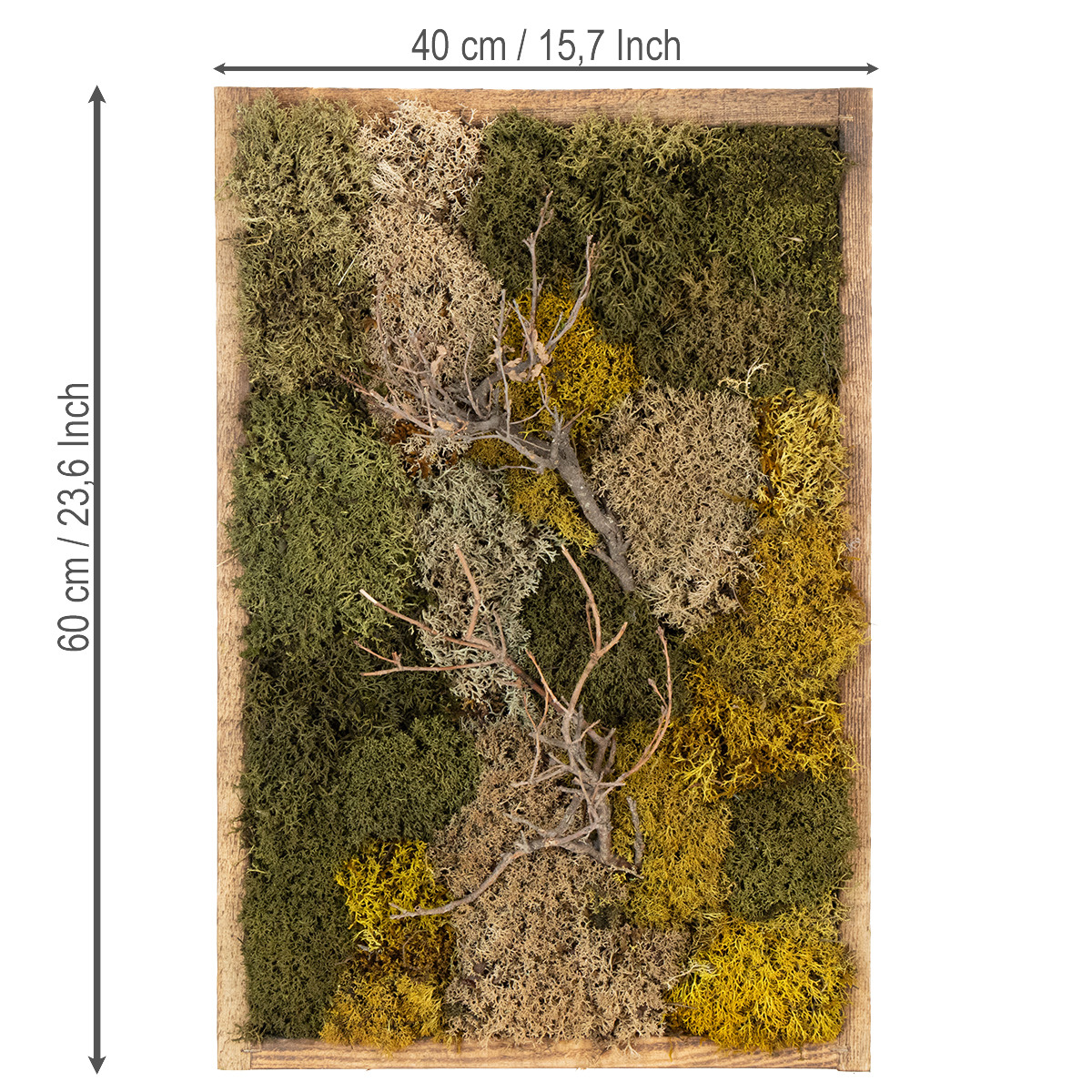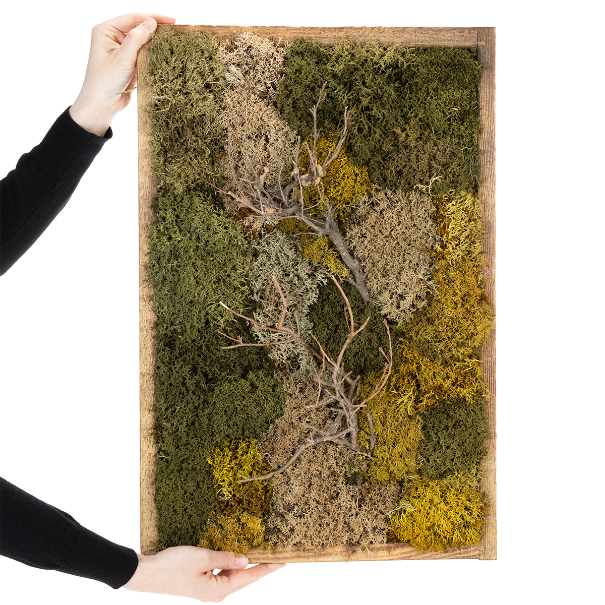 Descubre la belleza natural y la tranquilidad con nuestro variado cuadro de musgo. El musgo auténtico y preservado combinado con ramas cuidadosamente seleccionadas trae la atmósfera armoniosa de la naturaleza directamente a su hogar u oficina.