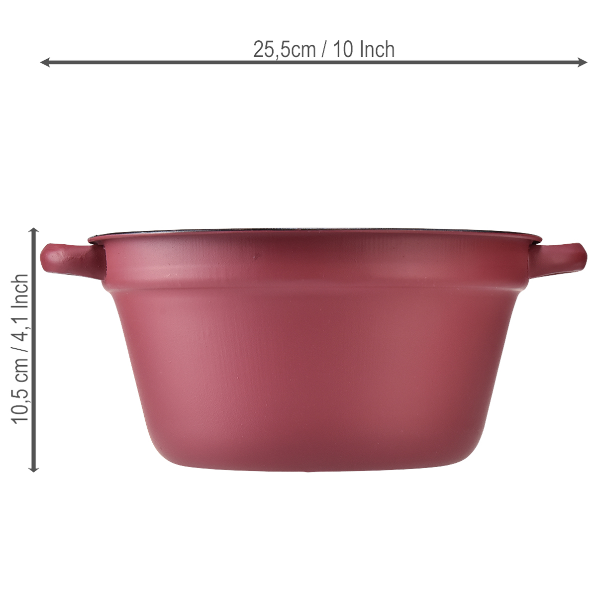 Cubo metálico con asas, maceta decorativa para plantar, rojo, Ø20,5 cm, H10,5 cm