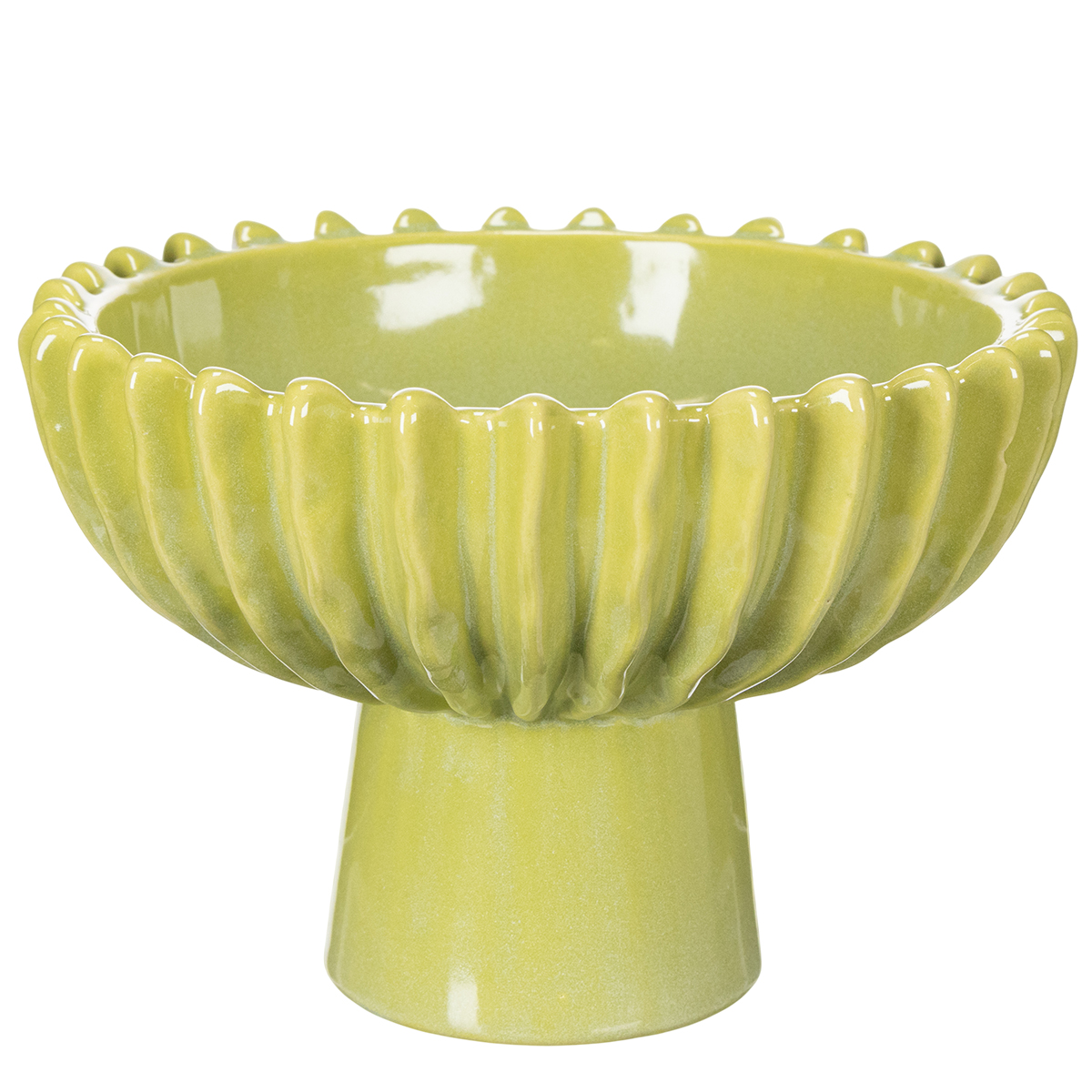 Nuestro cuenco de cerámica verde, de 21 cm de diámetro, no es solo un accesorio funcional para el hogar, sino una pieza clave de diseño moderno. El material cerámico de alta calidad impresiona por su superficie lisa y brillante y su precisa elaboración. Su inspirador diseño acanalado es especialmente llamativo, evocando alegremente la naturaleza y evocando a los cactus. El fresco color verde refuerza esta impresión y aporta vitalidad a cualquier estancia.