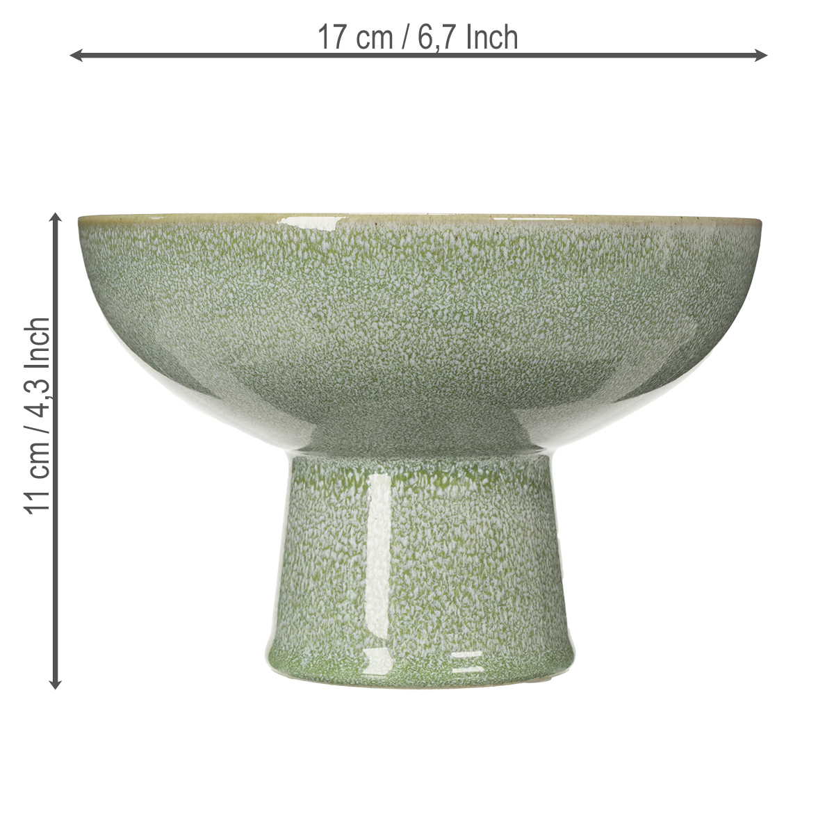 Este cuenco cáliz de 17 centímetros de diámetro, elaborado con cerámica de alta calidad, combina a la perfección estética y funcionalidad. Con una cómoda altura de 11 centímetros y un diámetro de 17 centímetros, reposa sobre una base pequeña pero robusta que realza su atractivo. Su superficie lisa de color gris verdoso, con su sutil estampado, combina a la perfección con materiales naturales como la madera o el lino, creando un estilo atemporal y moderno. ¿Buscas un cuenco decorativo especial para tu salón? Este elegante cuenco de cerámica aporta ligereza y elegancia a cualquier espacio. Queda especialmente bonito sobre una mesa de madera o combinado con mantelería de colores claros.