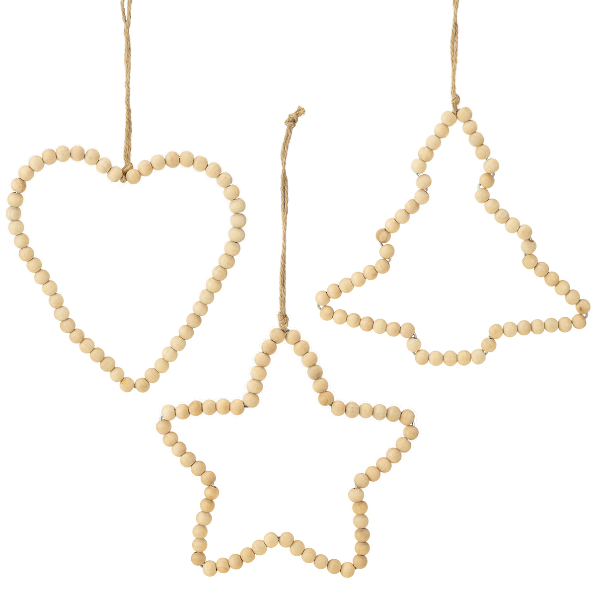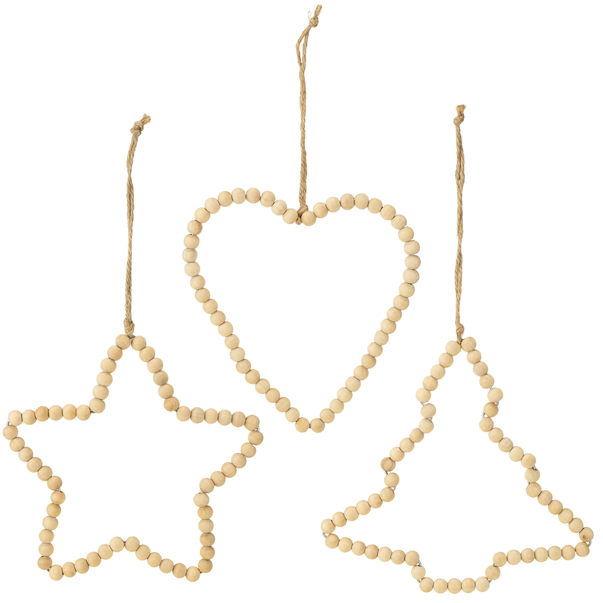 Cuentas navideñas decorativas de madera corazón estrella árbol H16cm 3 piezas