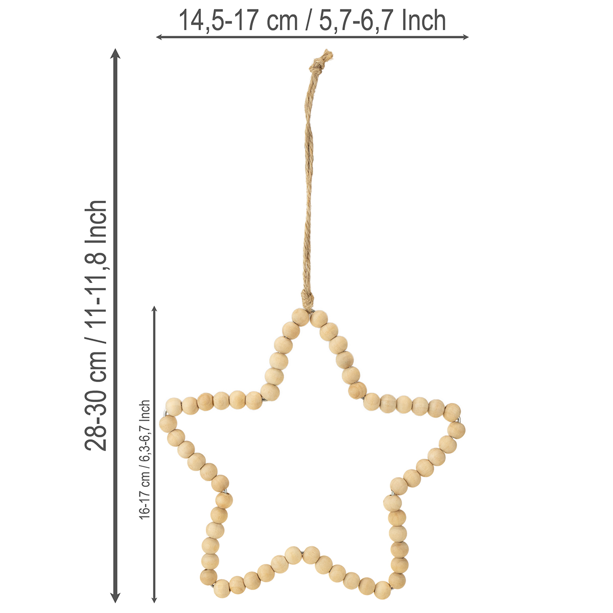 Las perlas tienen aproximadamente un centímetro de diámetro. La percha consta de un cordón, también conservado al natural. La decoración es maravillosamente adecuada como decoración de árboles de Navidad, pero también como decoración colgante o decoración de ventanas. Porque la percha de Navidad se ve igual de bien desde todos los lados gracias a las cuentas redondas de madera.
