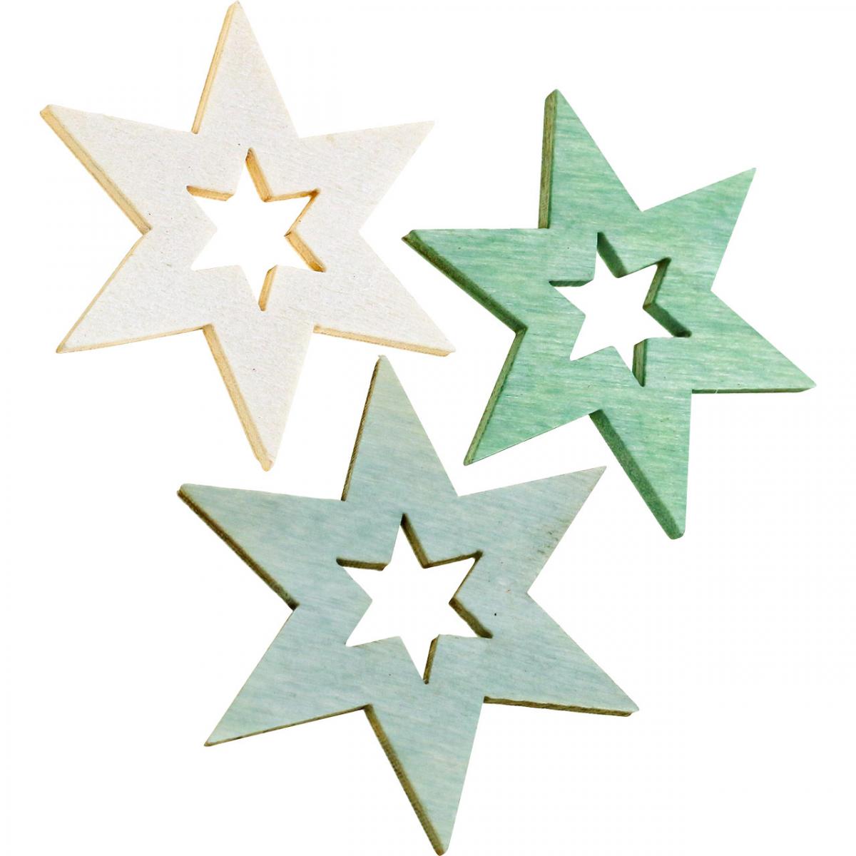 Decoración de estrellas de madera Decoración dispersa Navidad Verde H4cm 72 piezas