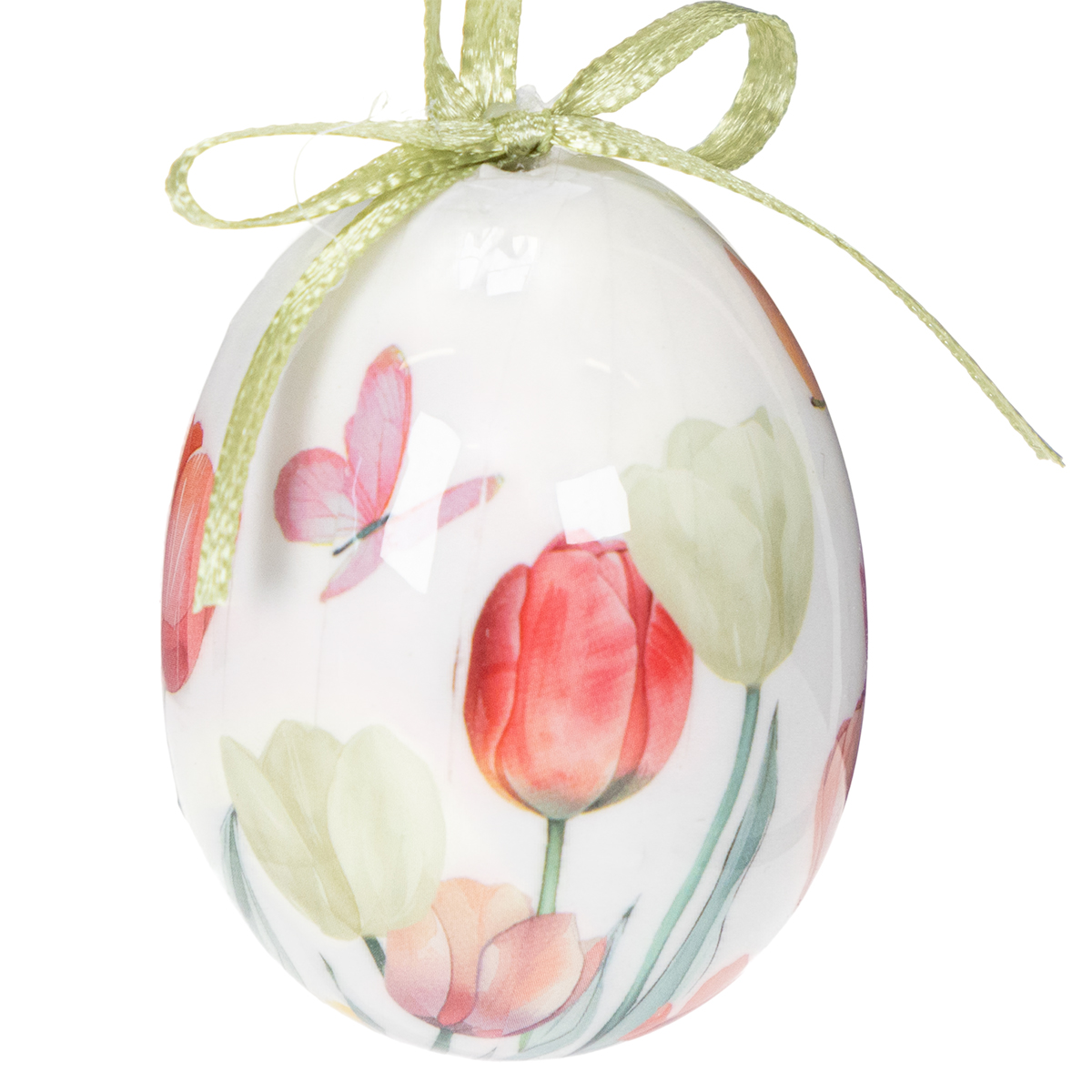 ¡La primavera está a la vuelta de la esquina! ¿Ya has pensado en tus decoraciones de Pascua? ¿Qué te parece algo que no solo sea atemporalmente hermoso, sino que también añada un toque de ligereza a cualquier habitación o árbol de Pascua? Nuestros huevos de Pascua con su encantador motivo de tulipanes son perfectos. La cinta incluida facilita colgarlos en ramas, ventanas o incluso en tu cesta de Pascua. ¿Quieres sorprender a tus invitados con una mesa decorada con estilo? Estos huevos de Pascua decorativos encantarán a cualquier entusiasta de la primavera. El cálido brillo de los delicados tulipanes, combinado con la clásica base blanca, es perfecto para una decoración de estilo rústico, pero también combina a la perfección con interiores modernos y minimalistas. ¡Compruébalo tú mismo y trae la primavera a tu hogar con estas elegantes decoraciones!