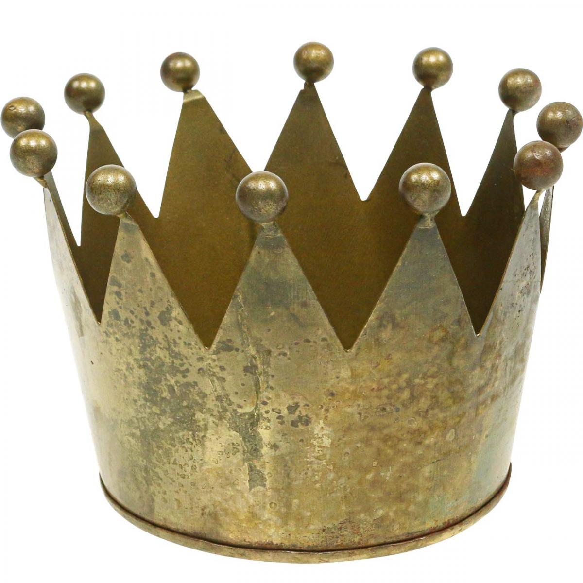 Decoración de mesa de metal con aspecto de latón envejecido corona decorativa Ø14cm H9cm