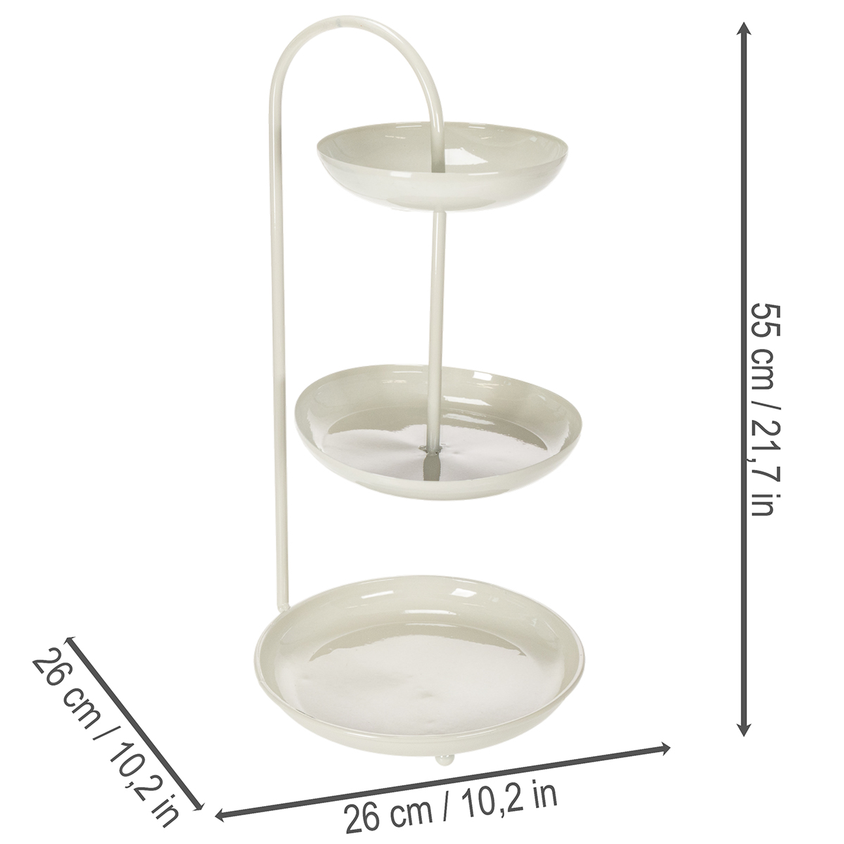 Con su diseño limpio y moderno, este soporte para servir de tres niveles se integra en cualquier habitación y añade un toque especial a tu decoración. Los tres niveles tienen diferentes diámetros (26 cm, 23 cm y 18 cm) y ofrecen espacio para alimentos envasados o elementos decorativos. Su paleta de colores neutros facilita su combinación con otros estilos de decoración, ya sea minimalista, escandinavo o incluso bohemio. Además, es práctico: es fácil de limpiar, compacto y resistente. ¡Perfecto para la mesa del salón, como centro de mesa en una boda o para fiestas temáticas! Nota: No es apto para alimentos sin envasar, por lo que es ideal para chocolates, cupcakes en moldes o figuras decorativas. Combina el soporte con otros artículos de Floristik24, como una elegante lámpara de mesa o floreros a juego, para completar tu ambiente a la perfección.
