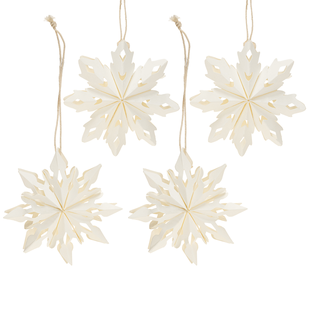 Decoraciones de papel con forma de copos de nieve para colgar, blancas, 10 cm, 4 unidades