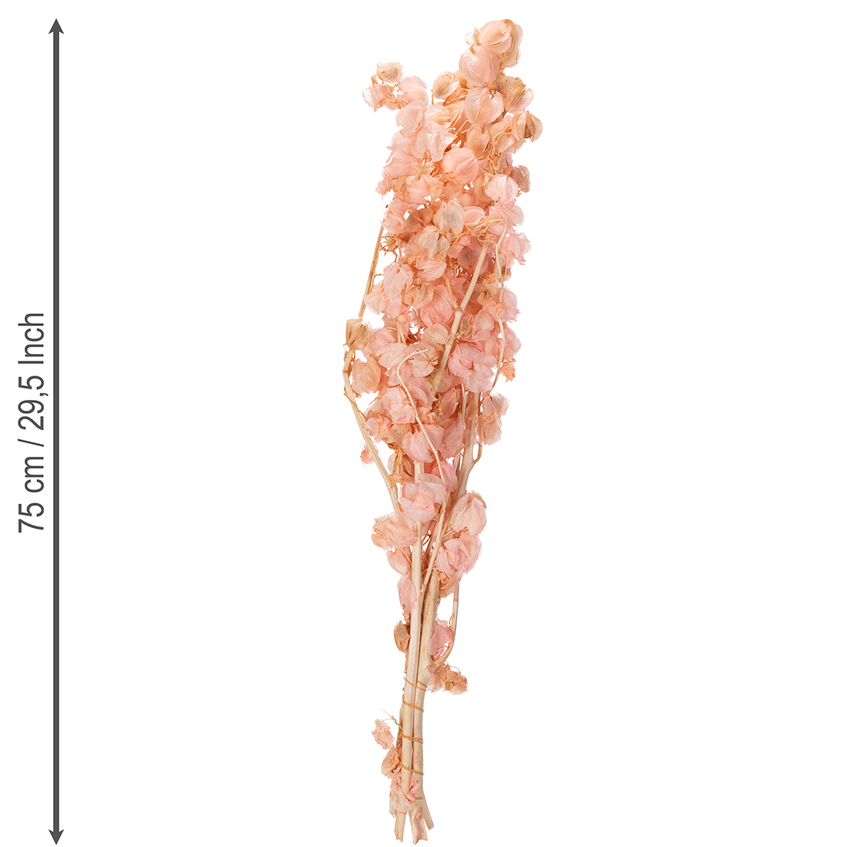 Gracias a su impresionante altura de 75 cm y a su fresca combinación de tonos rosas y naturales, esta flor seca de tallo no solo destaca en cualquier ramo, sino que también es una pieza versátil e independiente. Su delicada apariencia aporta un toque encantador y romántico a cualquier estancia. Además, es increíblemente práctica: no necesita riego ni se marchita, y combina a la perfección con otras flores secas o elementos decorativos como jarrones, candelabros o guirnaldas de luces.