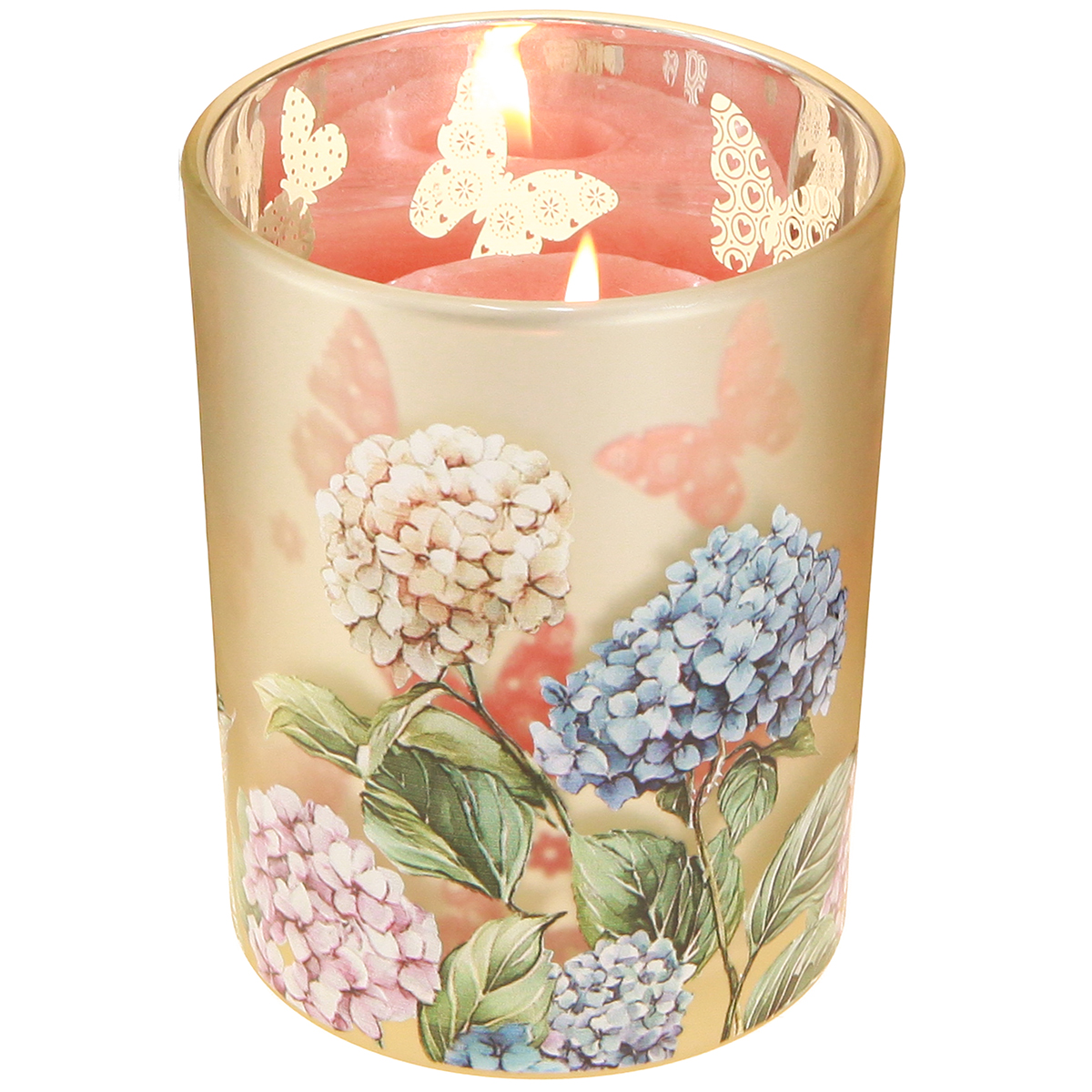 - Farol floral con un delicado motivo de hortensias.