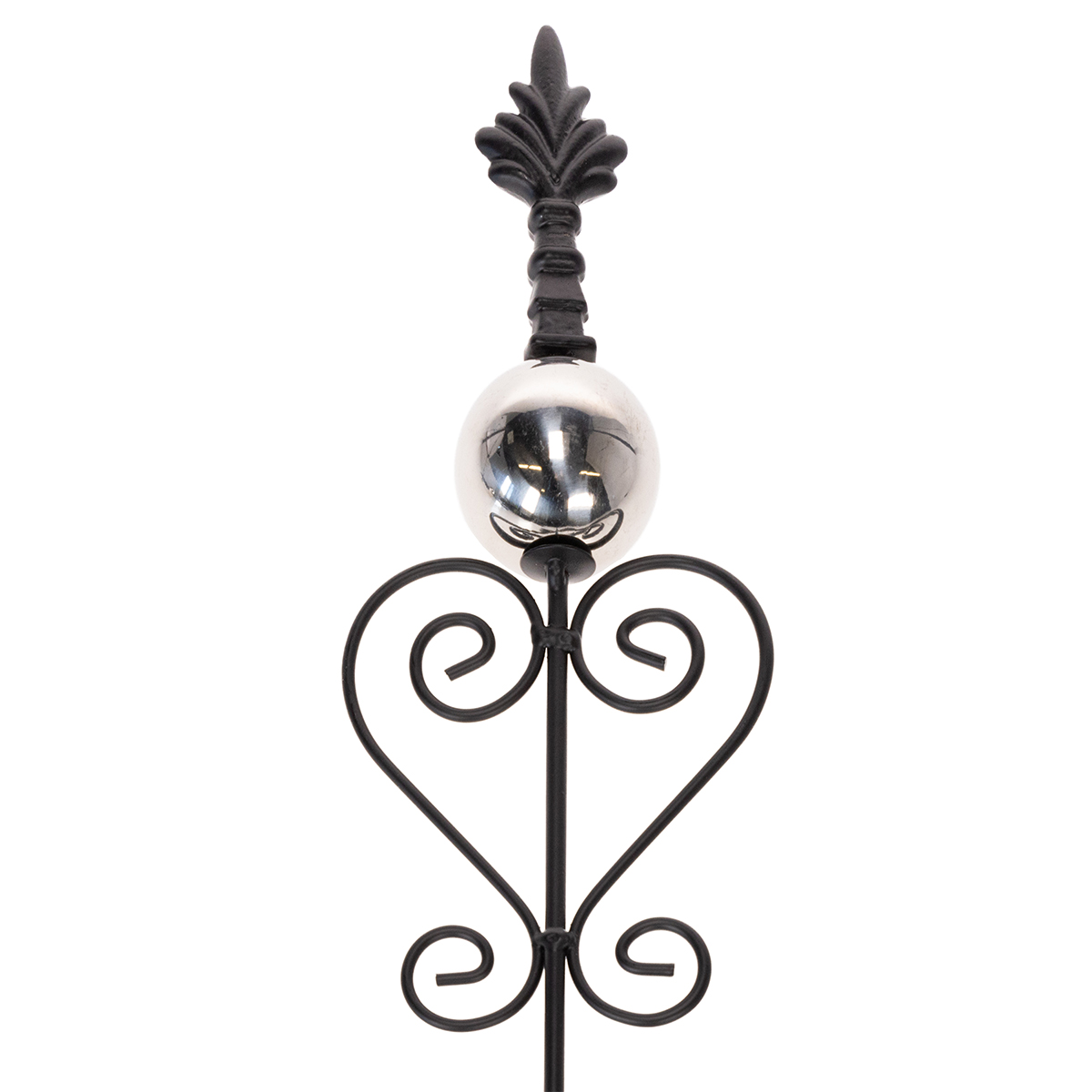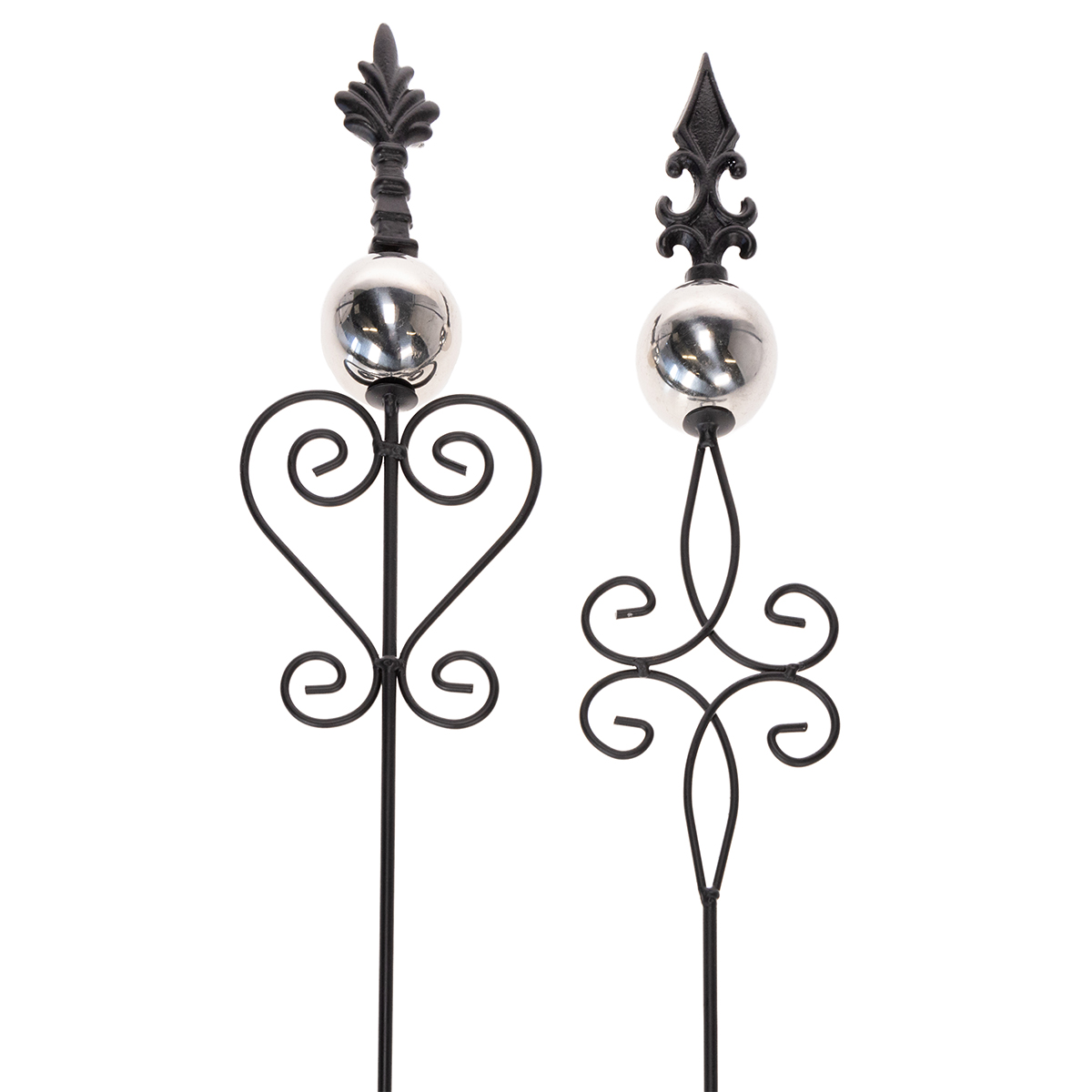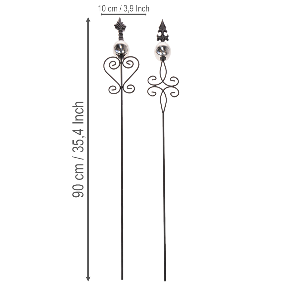 Estaca de jardín con diseño ornamentado, forma decorativa y elegante bola de metal, 90 cm, 2 piezas