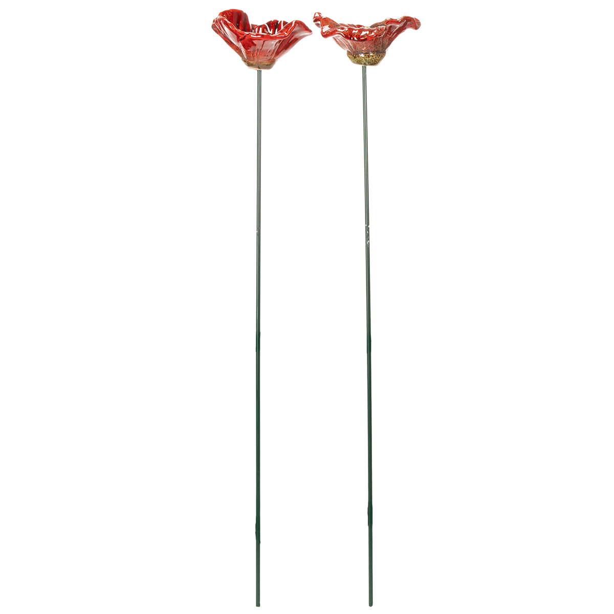 Estaca de jardín de amapola de cerámica, diseño inusual para parterres, 52 cm, 2 piezas
