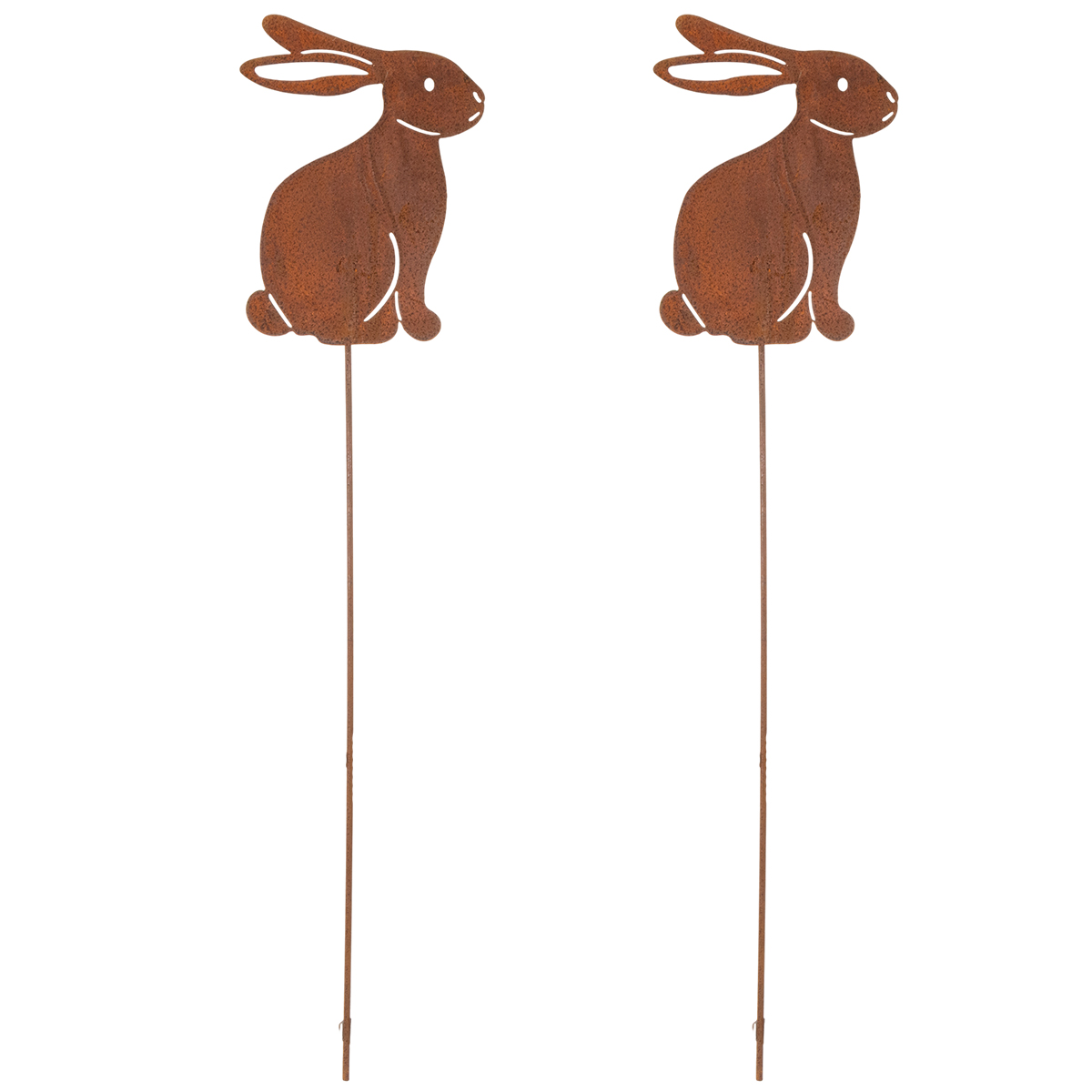 Otra ventaja: La estaca metálica para jardín es extremadamente fácil de cuidar. ¿Lluvia, sol o viento? No hay problema, ya que su material resistente a la intemperie está diseñado específicamente para ello. Y si te gusta decorar tu casa según la temporada, puedes lucirla cada año. Consejo: Combina el conejo de Pascua con otras estacas oxidadas, como mariposas o flores, para crear un aspecto armonioso en tu jardín.
