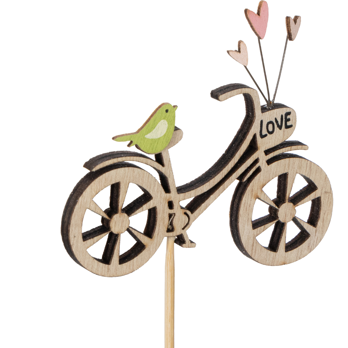 Estacas de madera con motivo de bicicleta para un ambiente romántico primaveral en el salón, 8 cm, 12 piezas