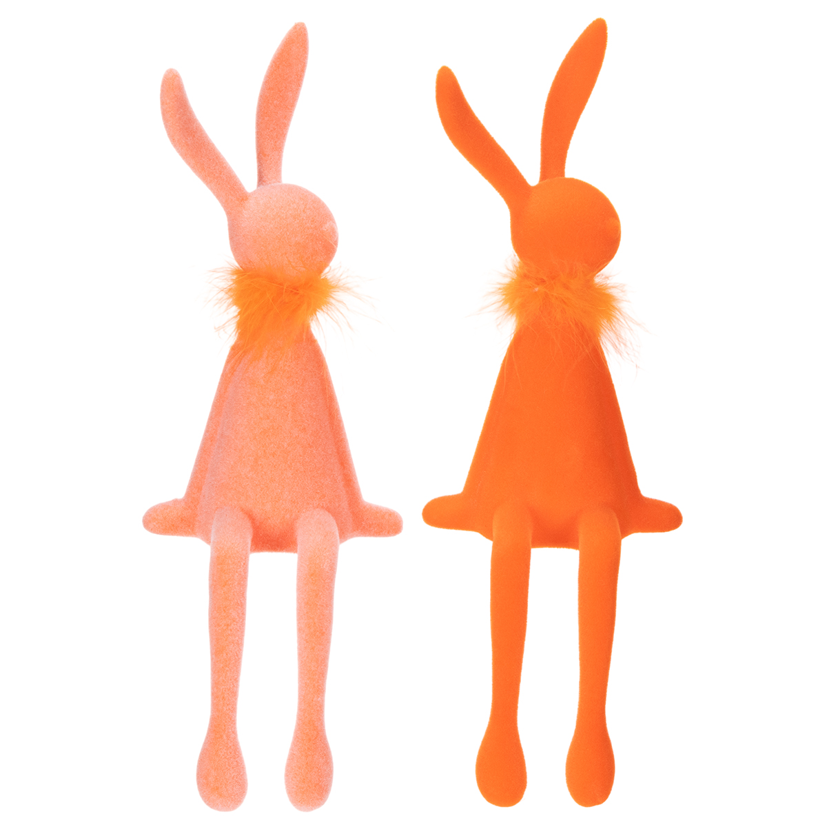 Estas figuras de Pascua, perfectas para colocar en estanterías, impresionan a primera vista con su diseño moderno y minimalista en dos atractivos colores. Los vibrantes tonos salmón y naranja crean al instante una alegre atmósfera primaveral y realzan cualquier decoración sin resultar recargadas. Las figuras tienen un acabado flocado ligero y aterciopelado, lo que les confiere un tacto de alta calidad y un toque elegante. Su aspecto es sofisticado, a la vez que alegre y vibrante, como la propia primavera.