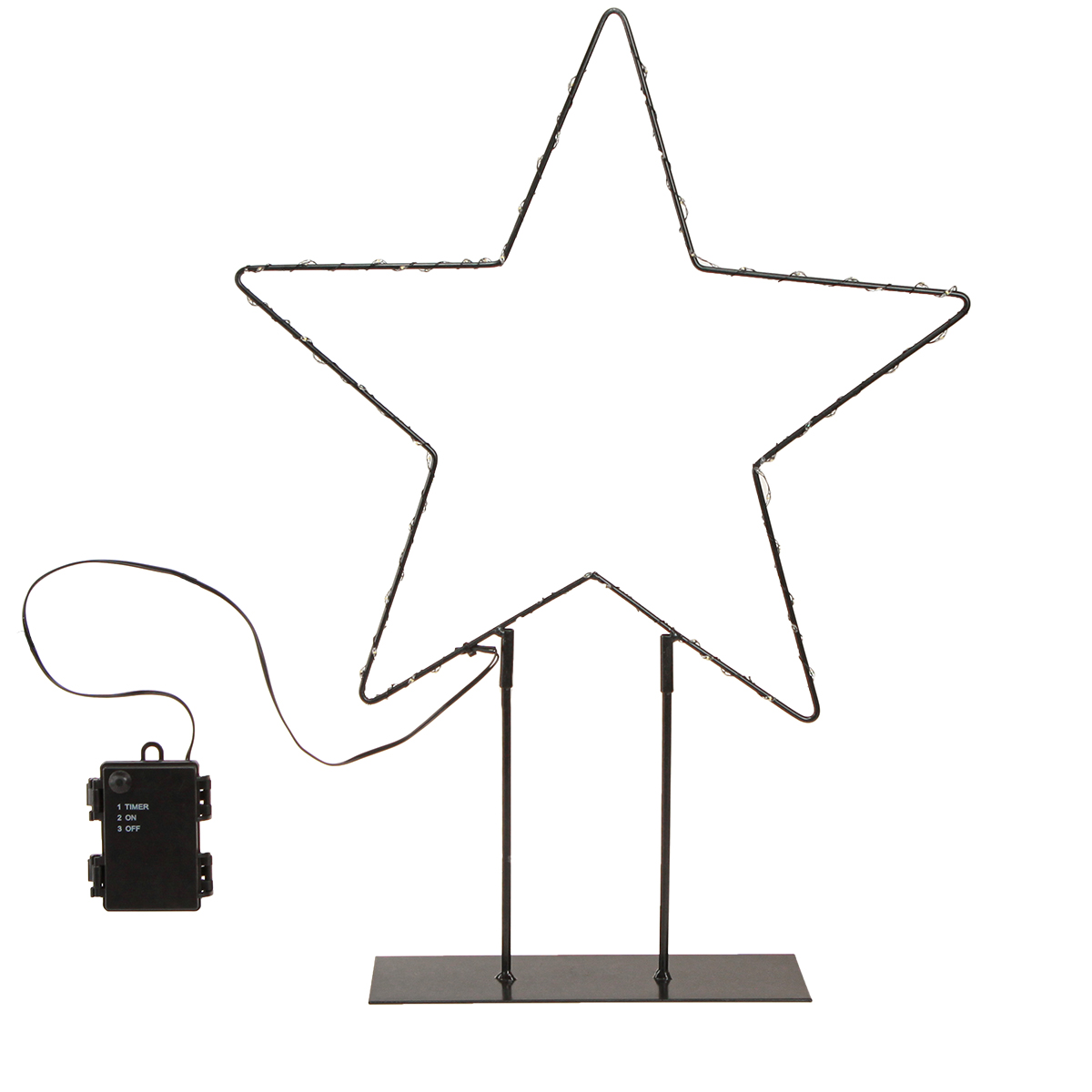 Moderna, elegante y a la vez muy versátil: la estrella decorativa metálica LED impresiona en todos los sentidos. Fabricada en metal negro y envuelta con una cadena de luces micro-LED, esta estrella añade un toque de elegancia industrial a tu hogar. Su estabilidad sobre una base plana la convierte en un elemento decorativo versátil, ya sea en la entrada o como iluminación en una mesa festiva. El compartimento negro para pilas es especialmente práctico, permitiendo una decoración totalmente flexible.