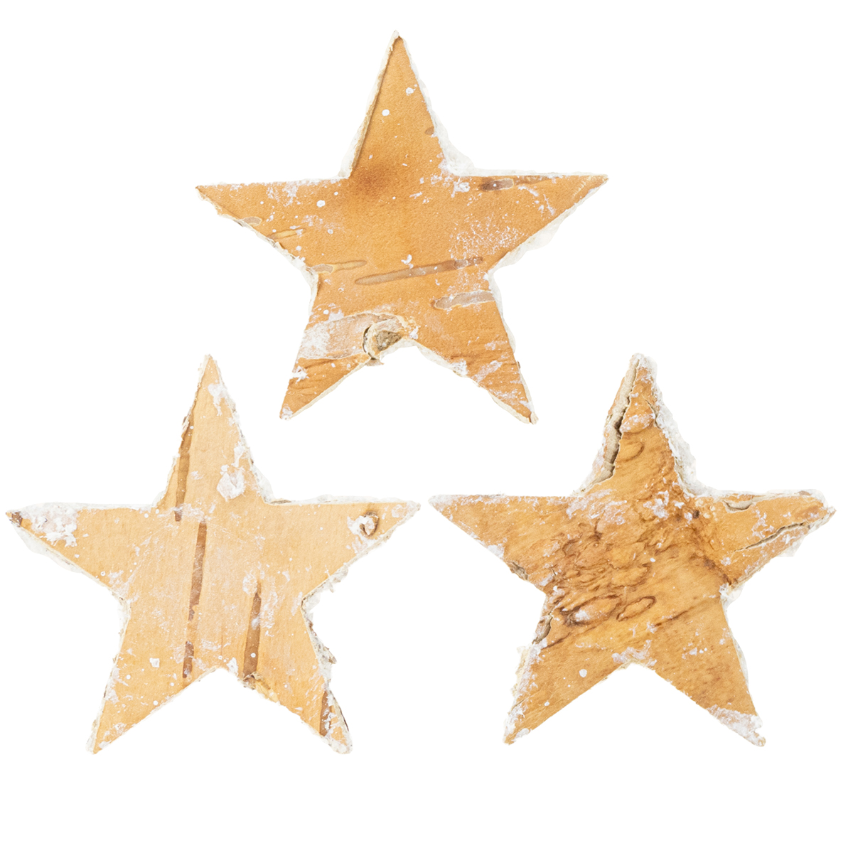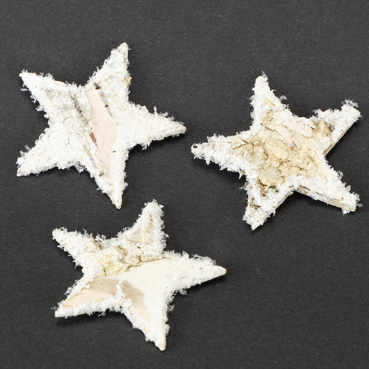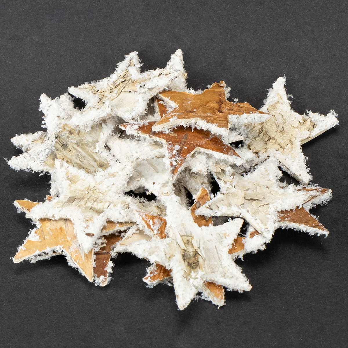 Estrellas de abedul, cubiertas de nieve, 4 cm, naturales, 60 unidades