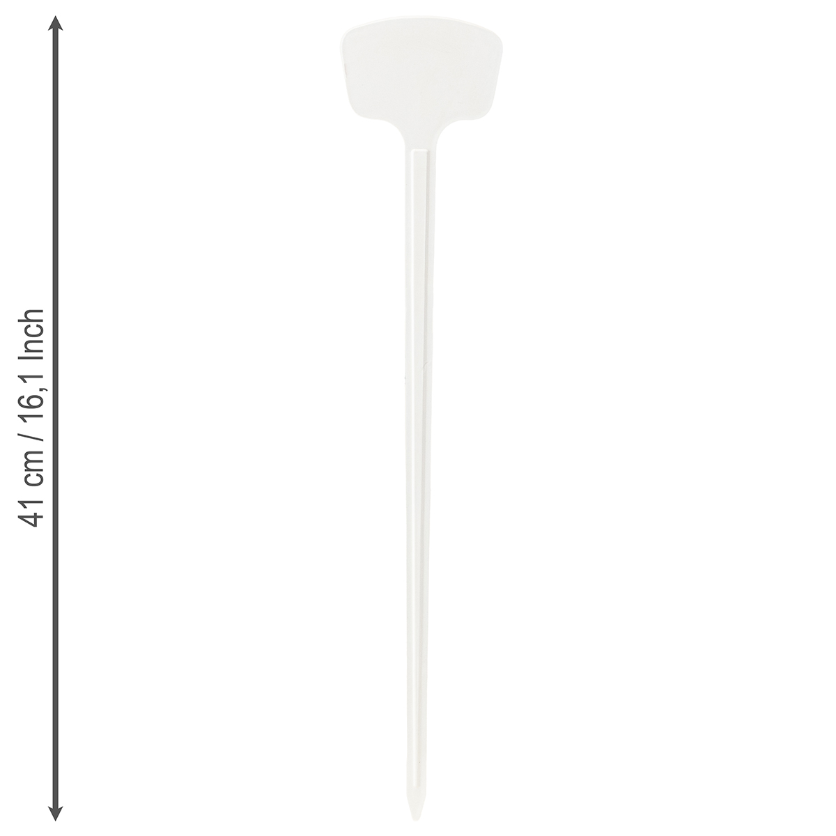 En general, el parche de la planta mide aproximadamente 41 centímetros de largo: la superficie para etiquetar mide aproximadamente 80 por 50 milímetros y la longitud de la varilla es de aproximadamente 36 centímetros. Obtienes la maceta para enchufar un paquete de 10 piezas. A los floristas les gusta usar los tapones de flores de tallo largo cuando fijan los precios: ¡simplemente pegue una etiqueta de precio y coloque la etiqueta de precio en el cubo o maceta de flores correspondiente!