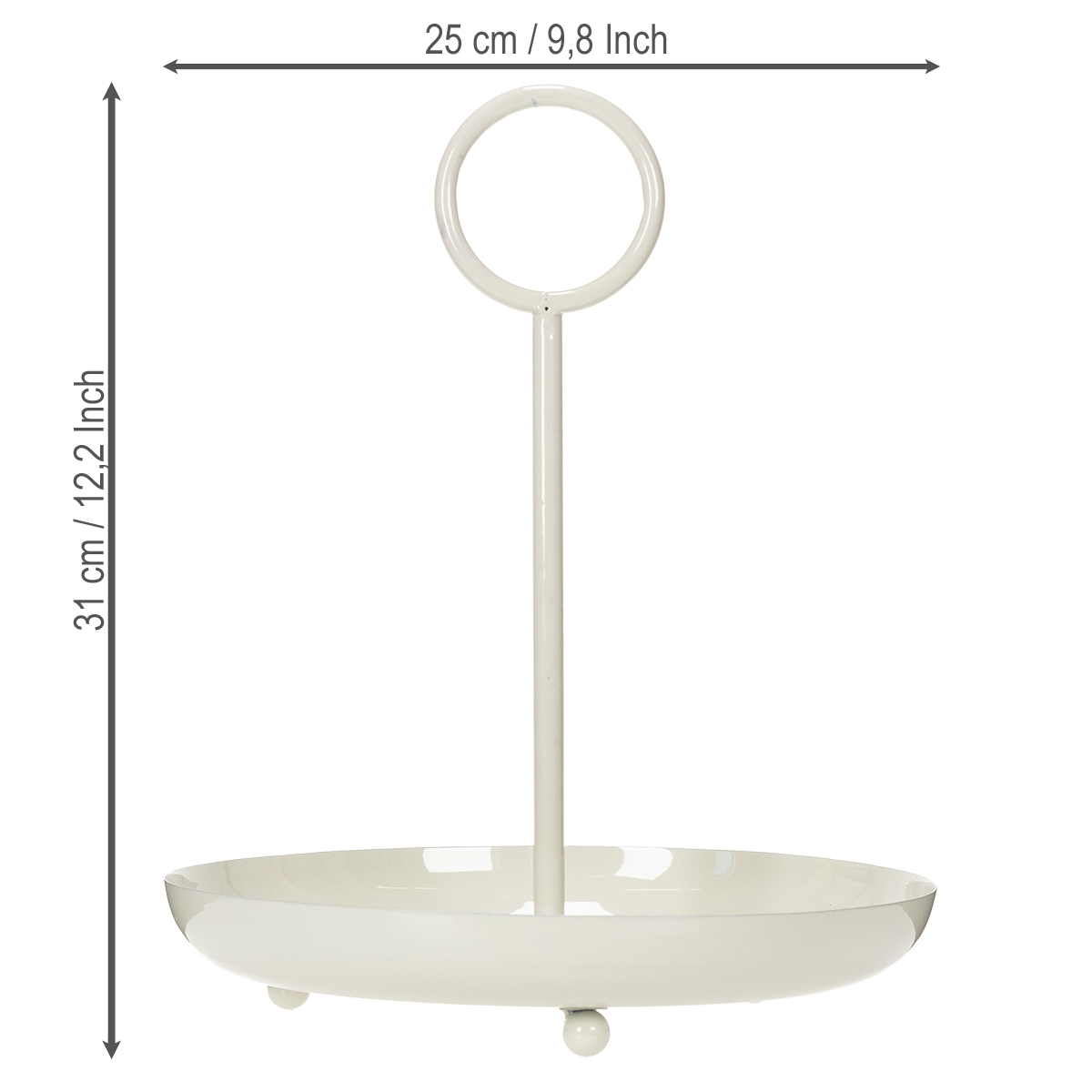 ¿Qué hace que este soporte para pasteles sea tan especial? Sencillamente, su armoniosa combinación de diseño y funcionalidad. Su acabado blanco radiante, similar a la porcelana, le confiere una elegancia atemporal, mientras que el metal robusto garantiza una larga vida útil. No se compara con los delicados platos de vidrio o soportes de plástico, que a menudo no cumplen con las expectativas. La base con tres pequeñas bolas proporciona estabilidad, incluso con mucha carga.