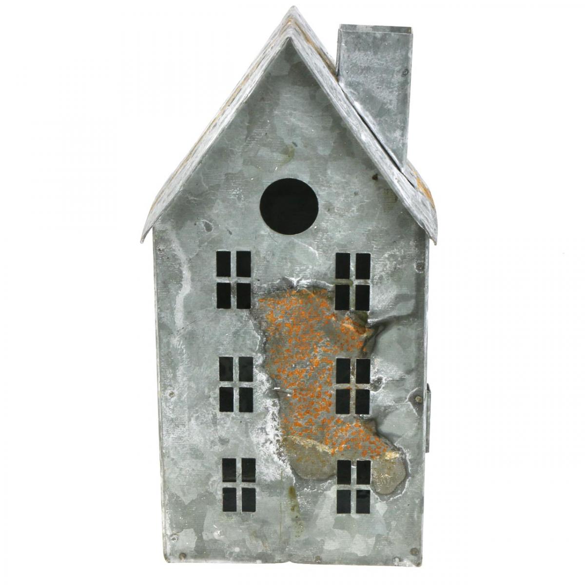 Farol casa metal shabby chic blanco lavado óxido AL20cm