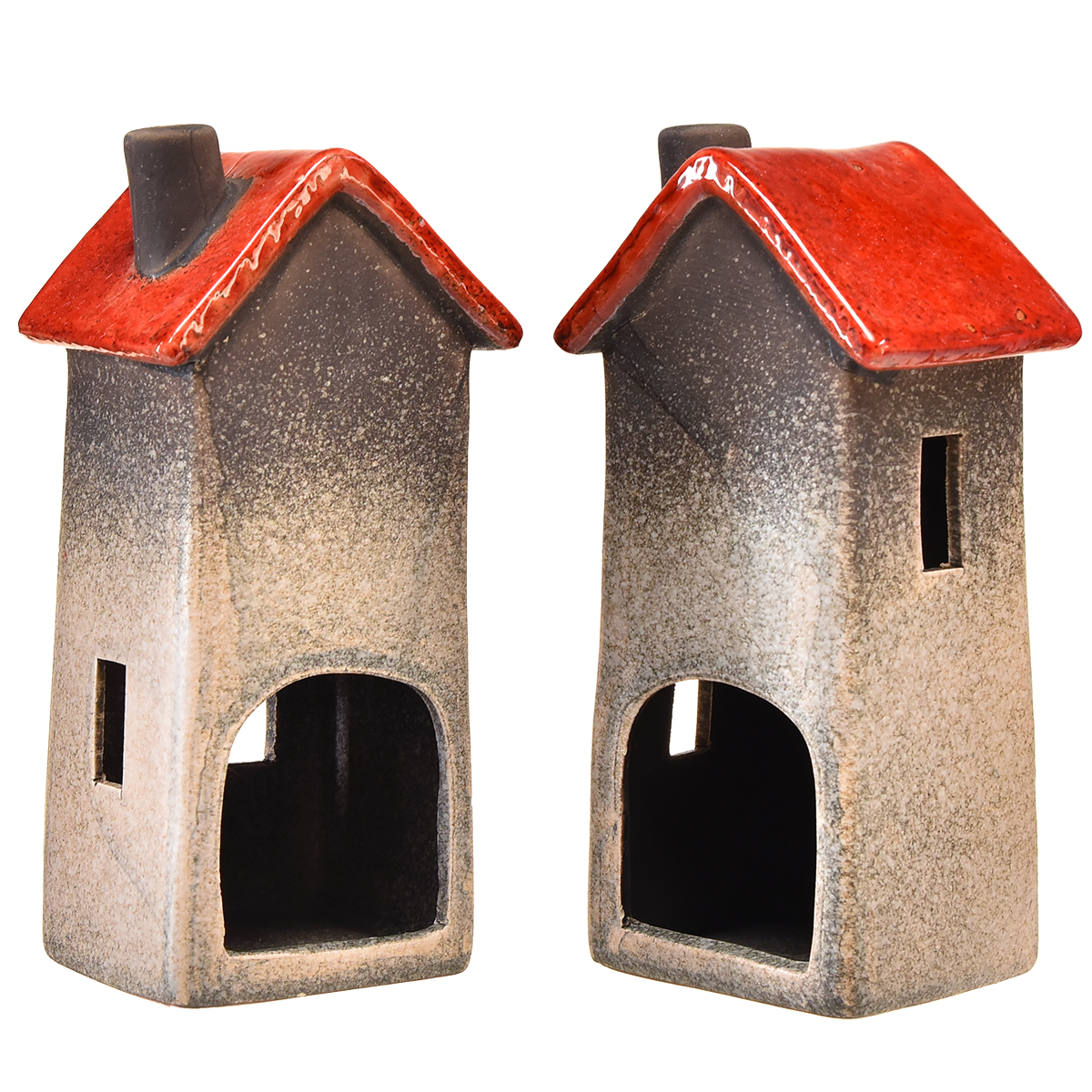 Farol de casa de cerámica con techo rojo y ventana en forma de corazón - 17,5 cm 2 piezas