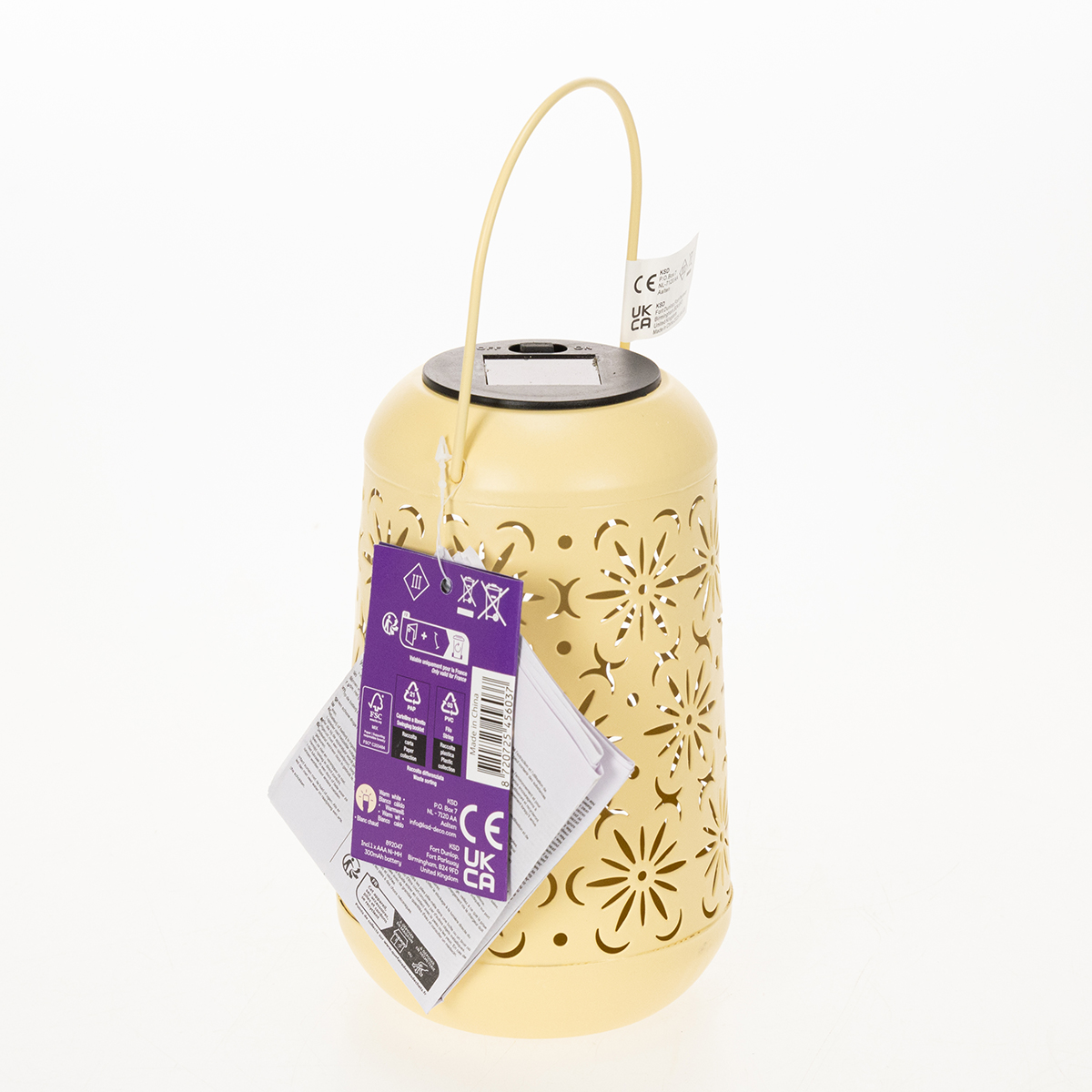 Con 18 cm de alto sin asa y 26 cm con asa, esta linterna tiene el tamaño perfecto para llamar la atención sutilmente sin resultar llamativa. El resistente metal en un suave amarillo combina a la perfección con otros tonos pastel y materiales naturales, dándole un toque bohemio. Su fuente de luz LED integrada es de larga duración, mientras que la batería AAA recargable incluida garantiza un uso sostenible.