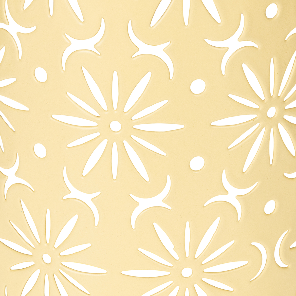 - Material: Metal resistente en color amarillo con estampado floral.