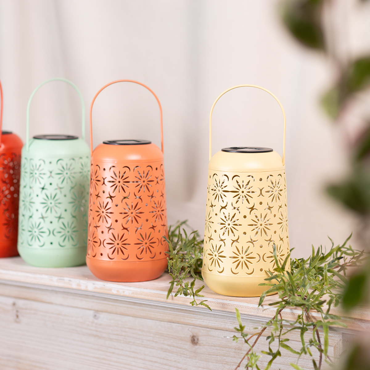 Farol solar con estampado floral: encantador y práctico.