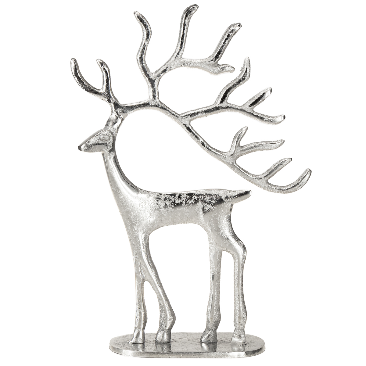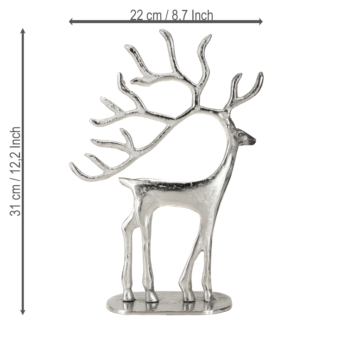 Figura de ciervo decorativa de reno de metal plateado H31cm
