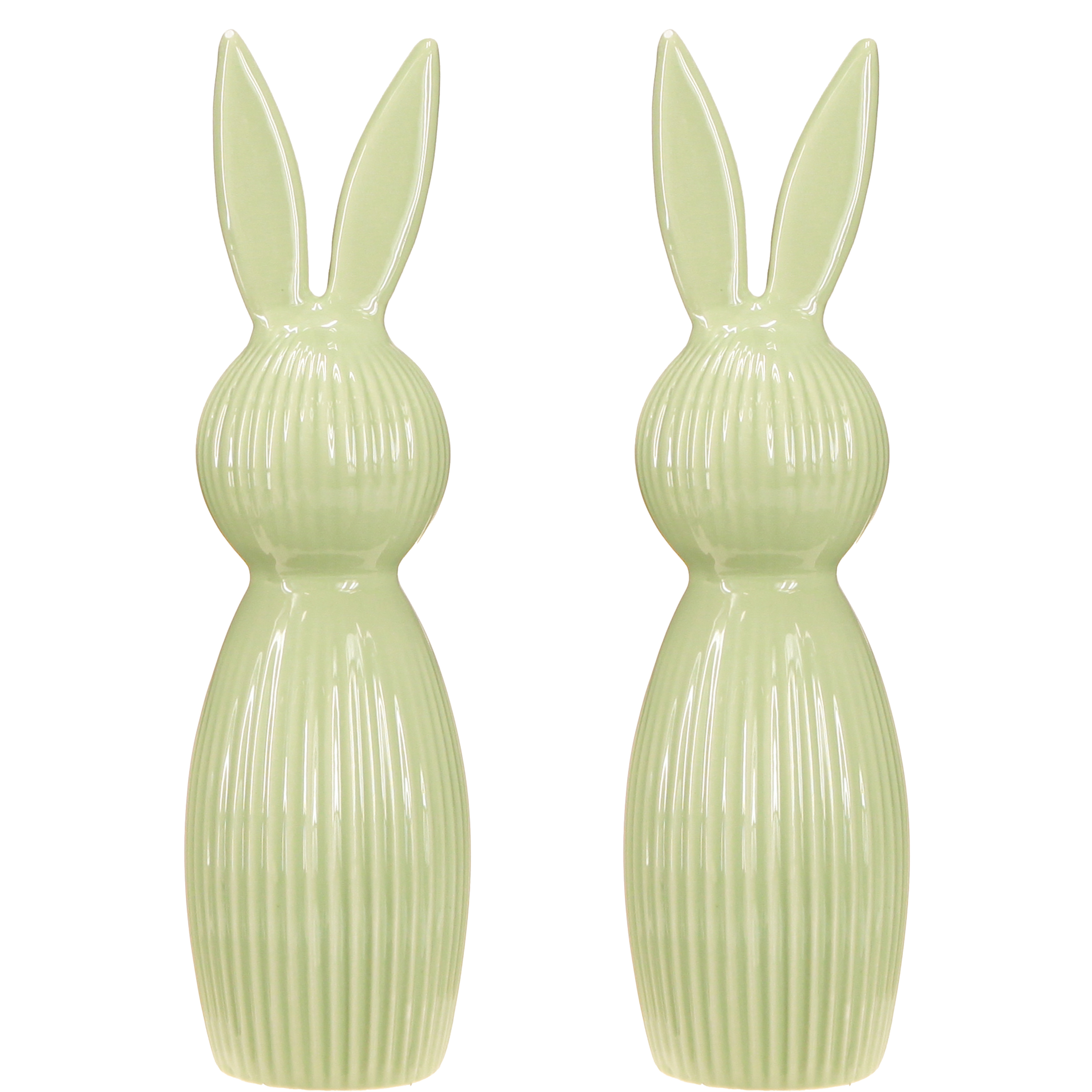 Figura de conejo de Pascua de cerámica en verde pastel, decoración de mesa, 22 cm, 2 piezas
