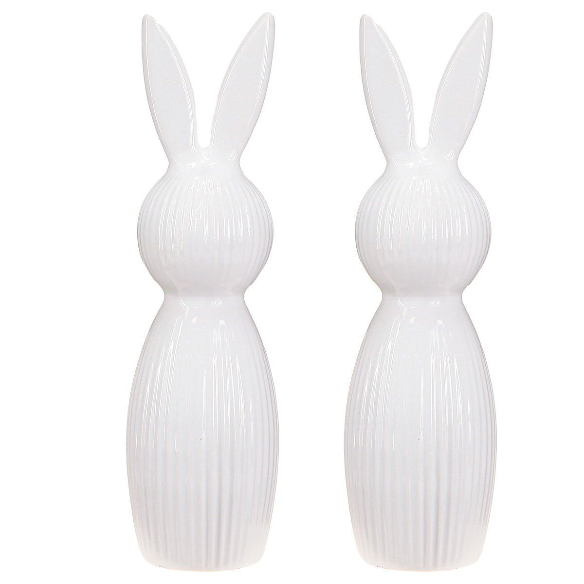 Primavera en el salón, en el aparador o en el marco de la ventana: no hay problema con esta encantadora figura de conejo. Esta figura de 22 cm de altura, de diseño sencillo, viene en un juego de dos y ofrece la combinación perfecta de elegancia moderna y estética sobria. Con su superficie blanca brillante y su sutil textura acanalada, luce sofisticada y discreta. ¿Buscas una decoración primaveral que se integre a la perfección con estilos de interior modernos como el minimalismo escandinavo o el diseño contemporáneo? Entonces, échale un vistazo a esta figura de conejo de cerámica. Complementa tu estilo a la perfección, especialmente combinada con frescos ramos verdes y blancos o con arreglos primaverales de huevos decorativos. ¿Te apetece? ¡Pídela ahora y convierte tu hogar en el centro de todas las miradas esta temporada!