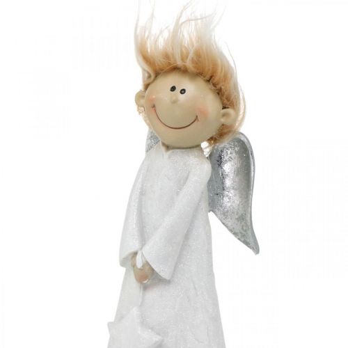 Figura decorativa ángel Navidad con estrella blanca 10 × 8 × 28,5cm