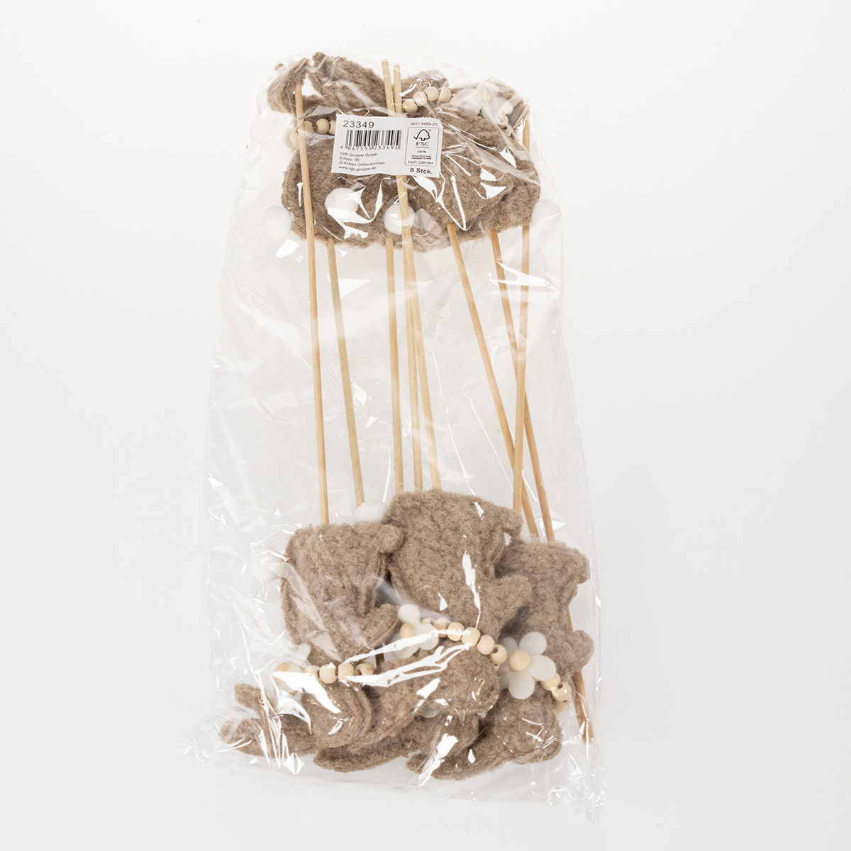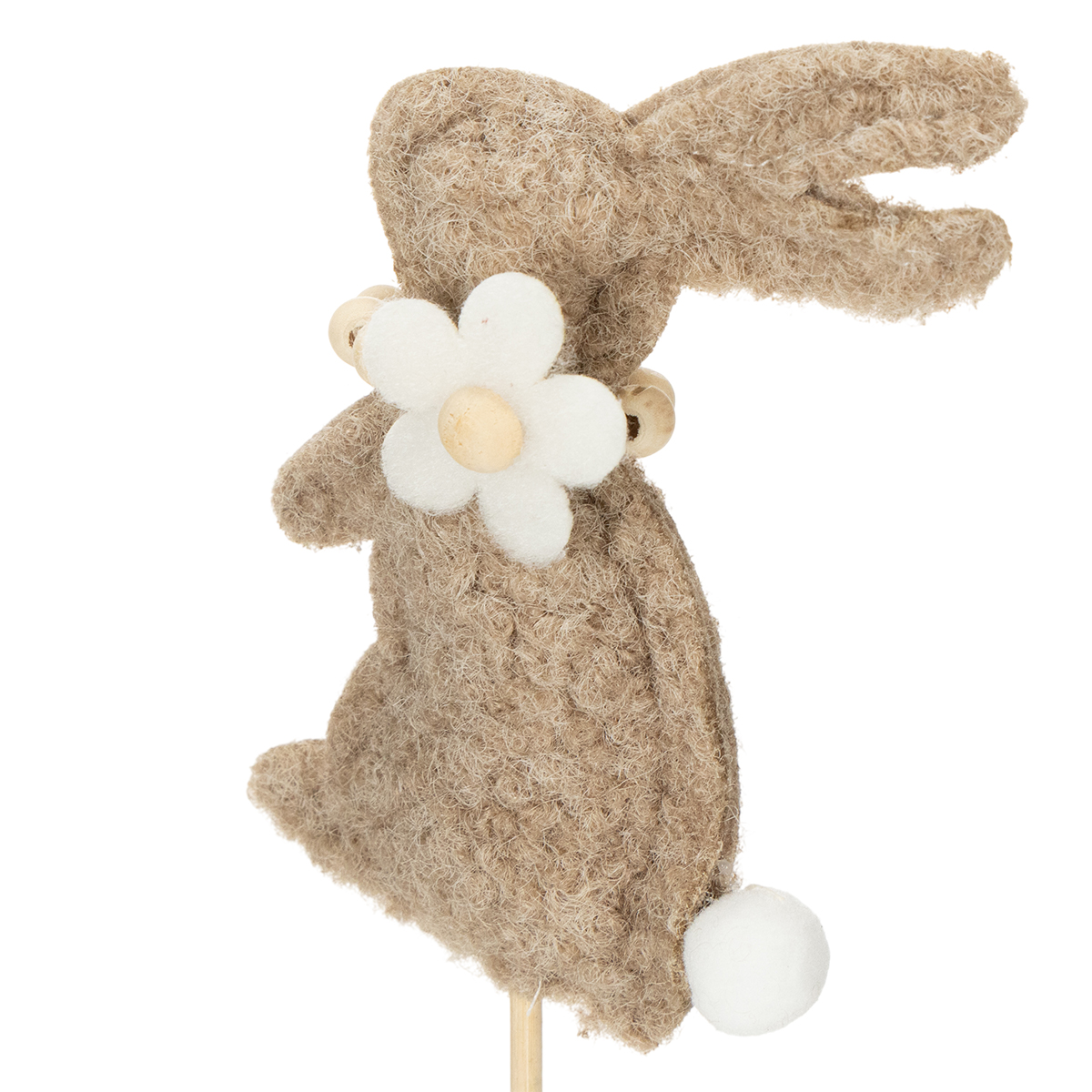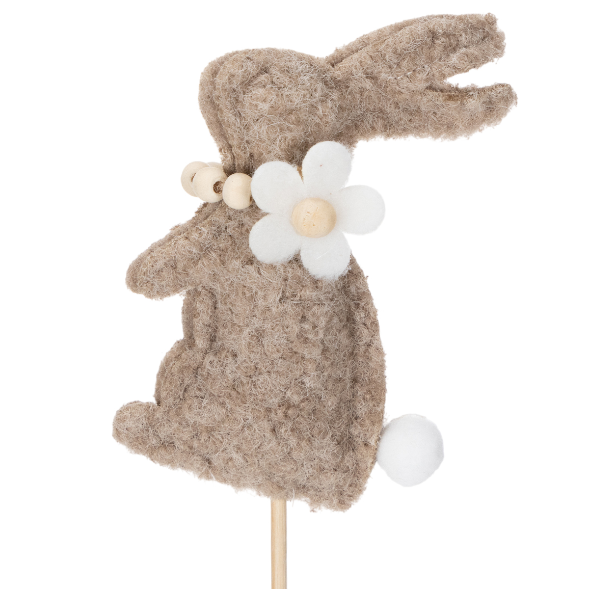 Este adorno de conejo de Pascua es una verdadera joya para los amantes de la decoración creativa. Las figuras están hechas de fieltro de alta calidad en un cálido tono marrón que irradia naturalidad y calidez. Los encantadores detalles, como la delicada flor y la pequeña cola esponjosa, les dan a los conejitos un encanto especial. Su resistente palo facilita su colocación en jarrones, macetas o arreglos florales. Quienes prefieran los diseños minimalistas o escandinavos quedarán encantados con el estilo sobrio pero expresivo de estas figuras.