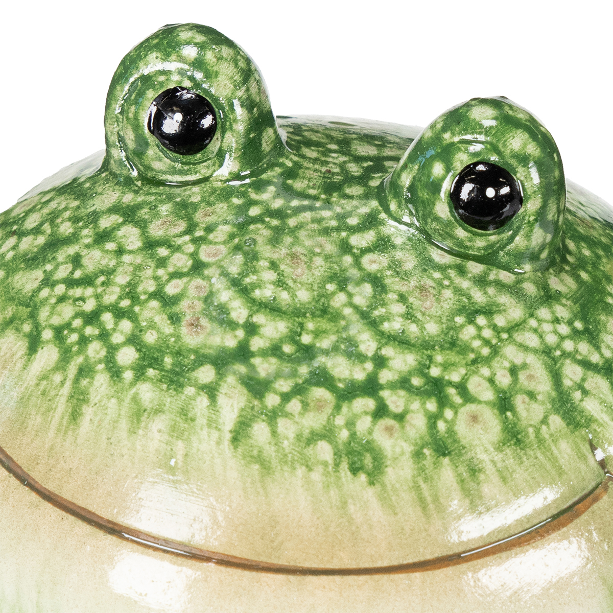 Gracias a su encantador diseño y vibrante color verde, estas figuras de jardín irradian frescura y alegría de vivir. La cerámica artesanal no solo garantiza su durabilidad, sino que también les confiere un brillo suave y aterciopelado. Encajan a la perfección en casi cualquier ambiente, desde el minimalismo moderno y el estilo rústico hasta la jungla urbana más divertida. Estas ranas son perfectas para lucir: en la mesa del jardín, entre las plantas o como llamativos detalles en el alféizar de la ventana. ¡Un pequeño toque decorativo que causa un gran impacto!