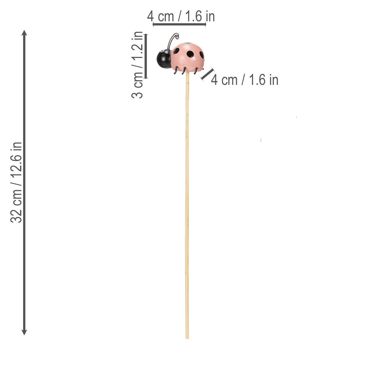 Nombre del producto: Figuras decorativas de mariquita para macetas y arreglos florales para decoración primaveral, 32cm, 16 piezas