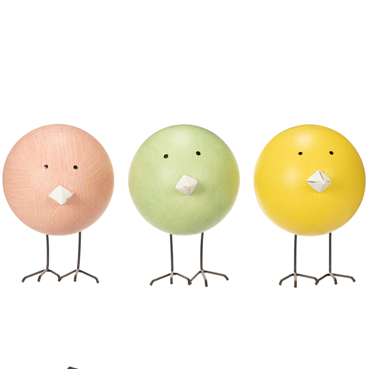 ¿Buscas una forma ingeniosa de añadir un toque divertido y alegre a tu hogar? Nuestras figuras decorativas redondas de pollitos alegrarán cualquier habitación al instante. Ya sean una encantadora decoración primaveral para la mesa del comedor, un toque colorido para una mesa festiva o un dulce punto de atracción en la habitación de un niño, estas tres pequeñas figuras en amarillo, rosa y verde seguro que alegrarán a todos. La combinación de madera para los cuerpos y metal para los picos y las patas les da a los pollitos una base robusta y un toque de diseño moderno.
